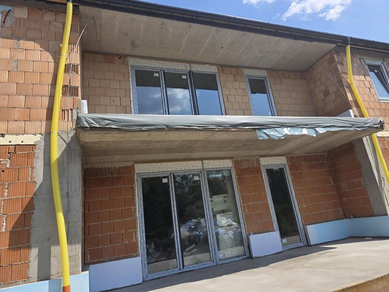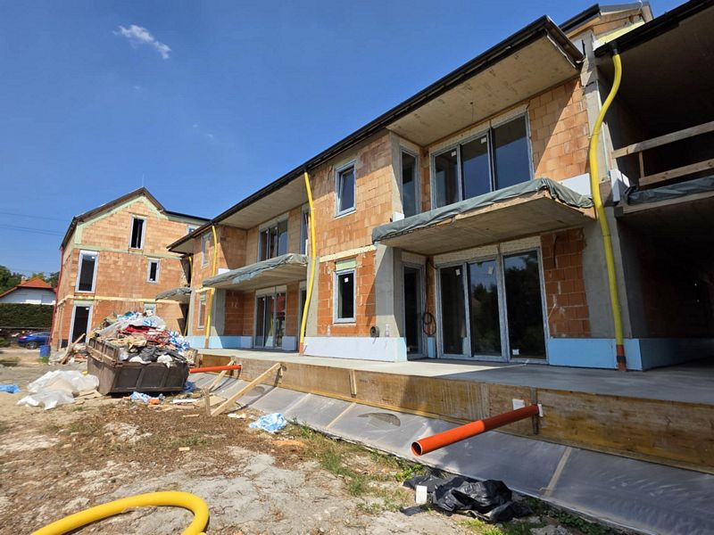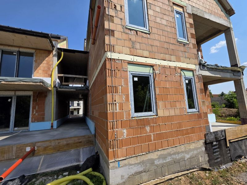 Szerkezeti leírás: Beton alap. Porothern tégla főfalak + 15cm dryvit szigetelés. Porotherm hanggátló blokktégla válaszfalak. A külső nyílászárók műanyag szerkezetűek, 3 rétegű fokozottan hőszigetelt üvegezéssel ellátva, kívül antracit, belül fehér színben, valamint rejtett redőnytok beépítéssel és elektromos redőny előkészítéssel (redőny és szúnyogháló nélkül). A belső nyílászárók dekorfóliás ajtók. Beton födém, 25cm kőzetgyapot szigeteléssel. Cserép fedésű tető.
