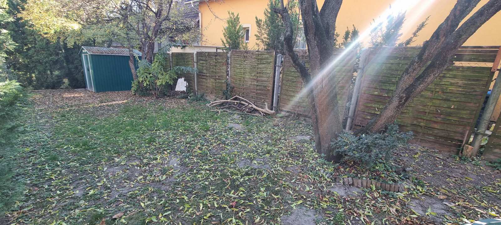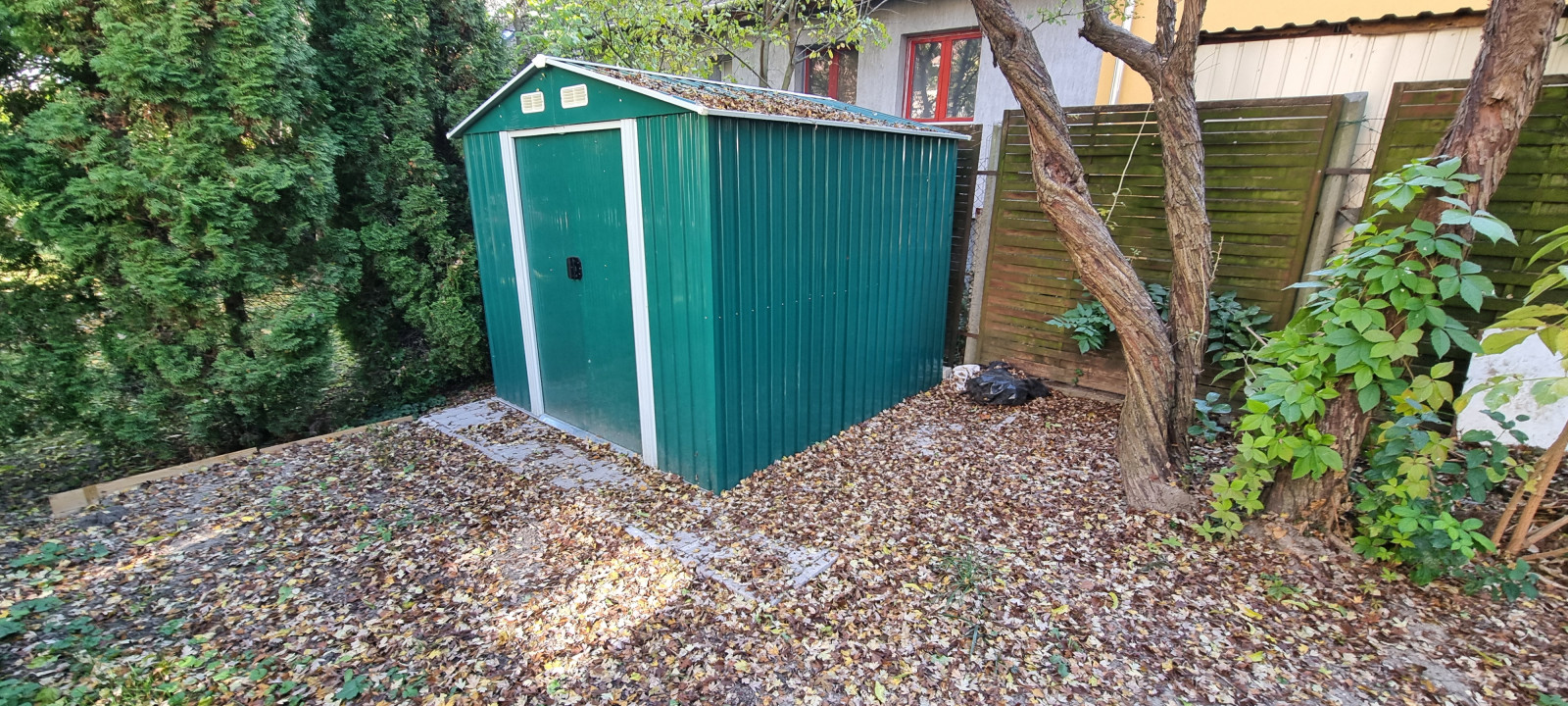 A lakás a hátsó kertben saját területtel rendelkezik ahol egy kis tároló is található.
