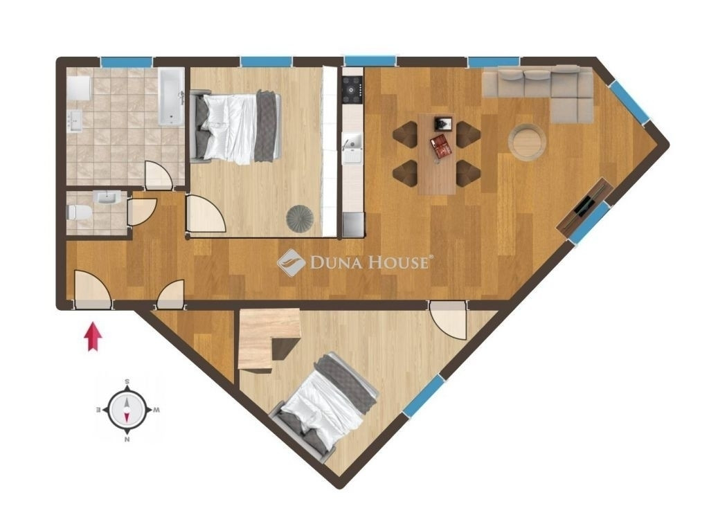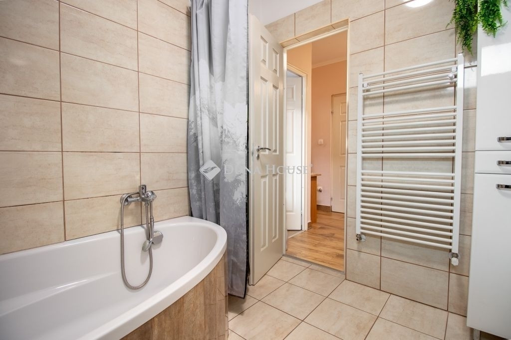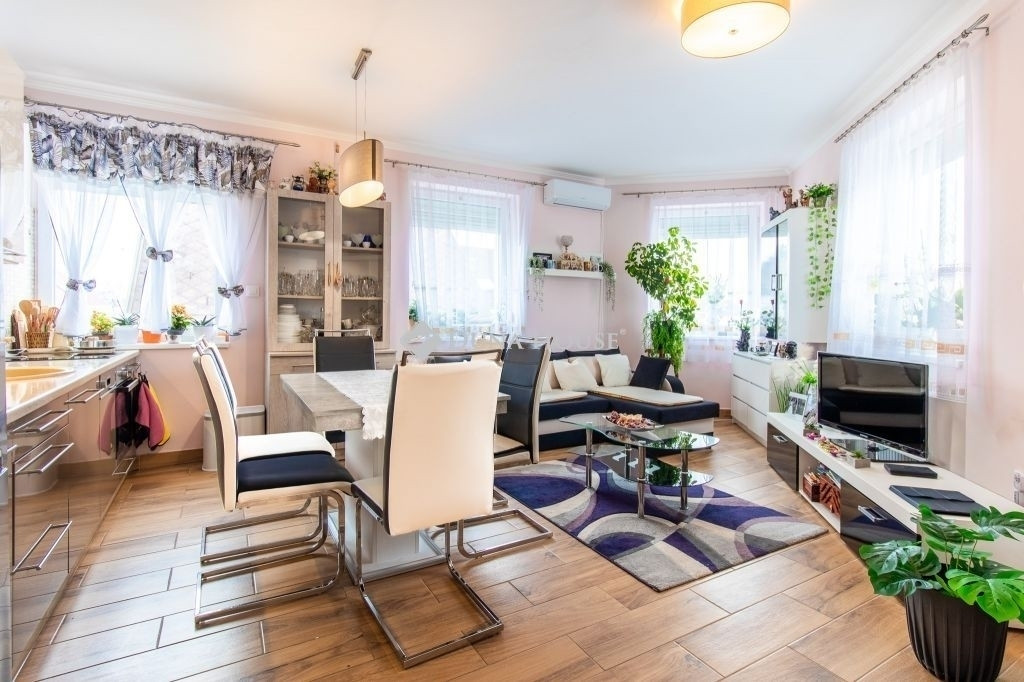Eladó Érd központjában egy 2020-ban épült, újszerű állapotú, első emeleti lakás, térkövezett zsákutcában, mindössze 6 lakásos társasházban.A lakás délnyugati tájolású, így egész nap világos, kellemes hangulatú és energiatakarékos.Az ingatlan elosztása amerikai konyhás nappali, két külön nyíló hálószoba, kamra, fürdőszoba és WC. Az alaprajz különleges, kényelmes életteret biztosít pároknak, kisebb családoknak és bérbeadásra is ideális.A fűtést gáz-cirkó rendszer biztosít radiátoros hőleadókkal. A komfortérzetről egy inverteres hűtő-fűtő klíma gondoskodik. Az ablakokon redőny található, a bejárati ajtó biztonsági kivitelű. A beépített, minőségi konyhabútor a gépekkel együtt a vételár részét képezi. .A lakáshoz tartozik egy saját, 5 m²-es tároló, ami a 65m² részét képzi, valamint egy felszíni gépkocsi-beálló a zárt udvarban, amely szintén benne van az árban.A fenntartási költségek rendkívül kedvezőek. A teljes rezsi hozzávetőleg 15.000 Ft havonta, amely tartalmazza a villany, gáz, víz és csatorna díját.A környék infrastruktúrája kiváló. Rövid sétával elérhető óvoda, iskola, játszótér, gyógyszertár, boltok és különböző szolgáltatások. A buszállomás, valamint Érd alsó és Érd felső vasútállomás is mindössze néhány perc gyalog.Az ingatlan ideális választás fiatal pároknak első otthonnak, családoknak, befektetőknek bérbeadásra, valamint idősebbeknek is, akik egy nyugodt, jól fenntartható, központi elhelyezkedésű lakást keresnek.