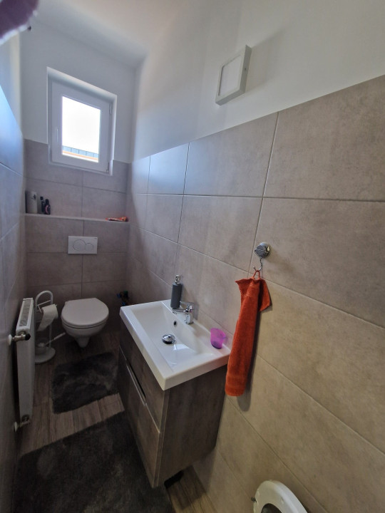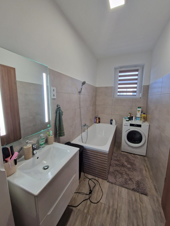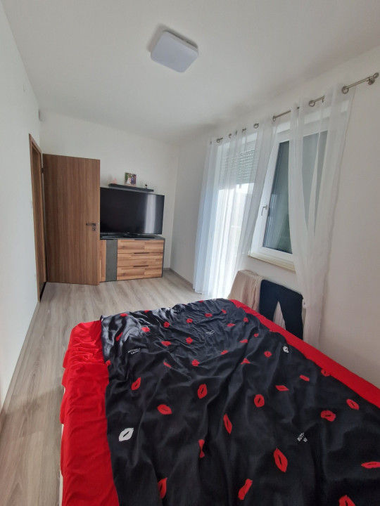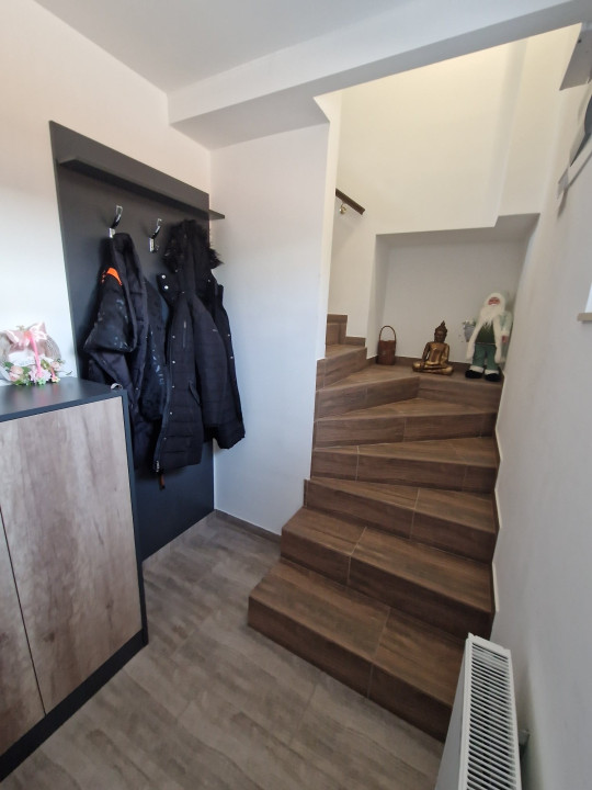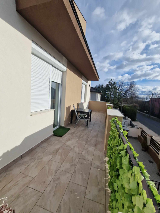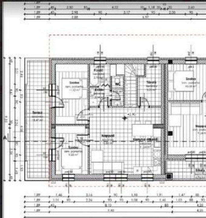 Emelet: közlekedő (2,34nm), nappali amerikai konyha (28,1nm), 2 hálószoba ( 11,24nm, 9,35nm), dolgozó-gardrób (5,2nm), fürdőszoba (2,7Nm), wc(2,09nm), terasz (18,45nm)