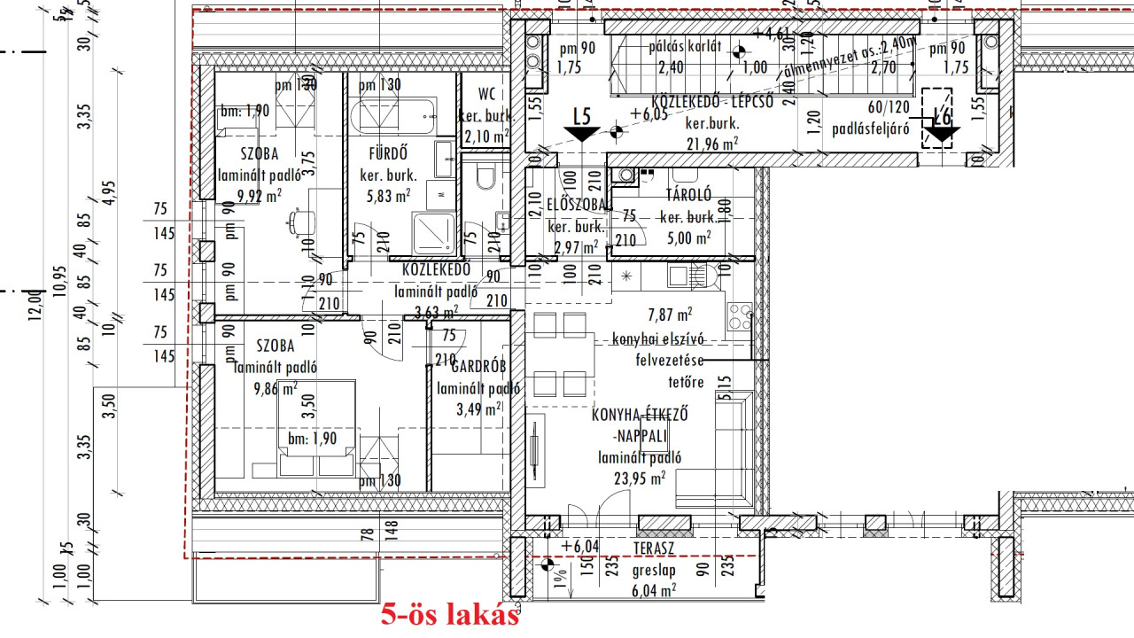 5-ös lakás. 2 szoba + nappali, nettó: 66,75 m2 (+ 6 m2 erkély). 87,9 Millió Ft (+ garázs 3 Millió vagy nyílt parkoló 2 Millió)