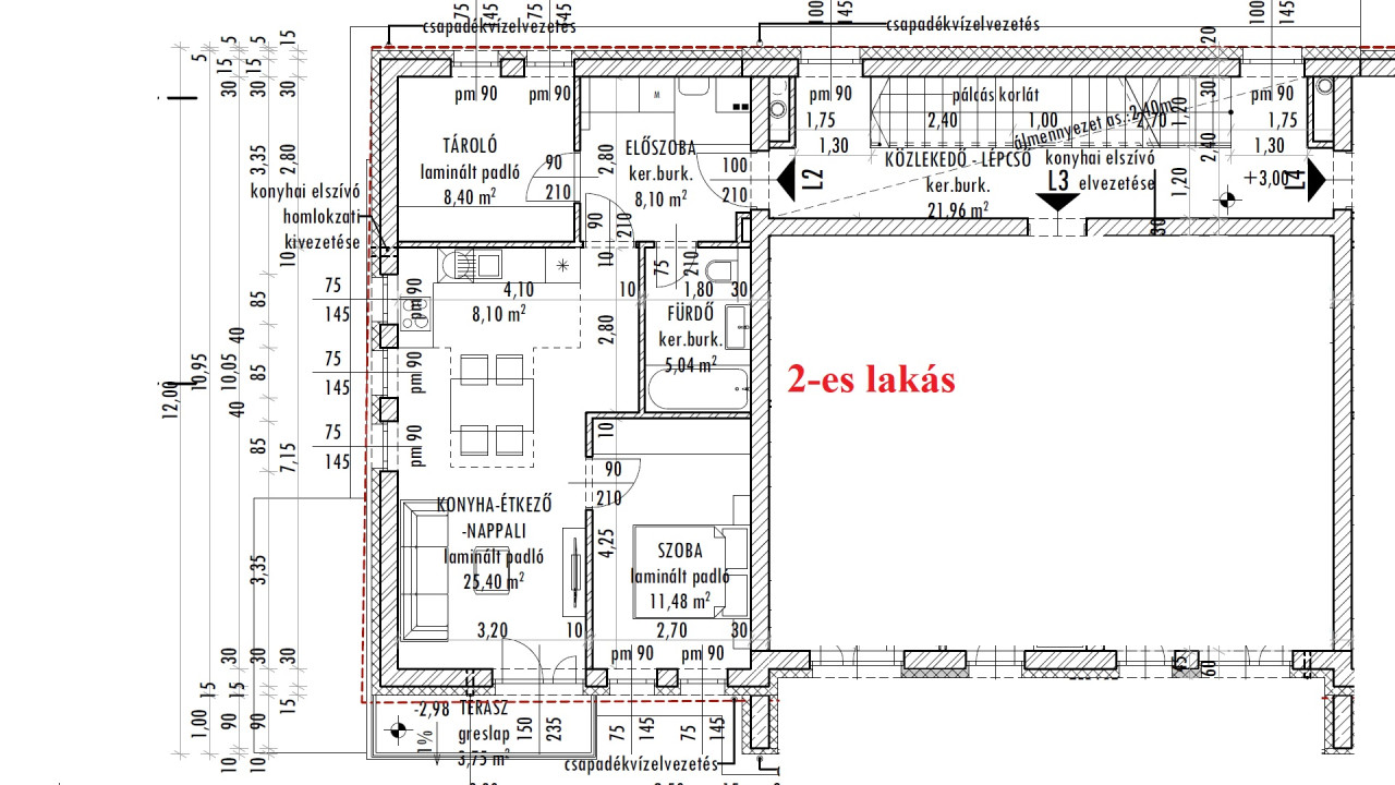 4-es lakás. 2 szoba + nappali, 58,42 m2 (+3,75 m2 erkély). 75,9 Millió Ft (+ garázs 3 Millió vagy nyílt
