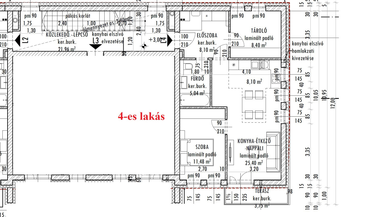 4-es lakás. 2 szoba + nappali, 58,42 m2 (+3,75 m2 erkély). 75,9 Millió Ft (+ garázs 3 Millió vagy nyílt