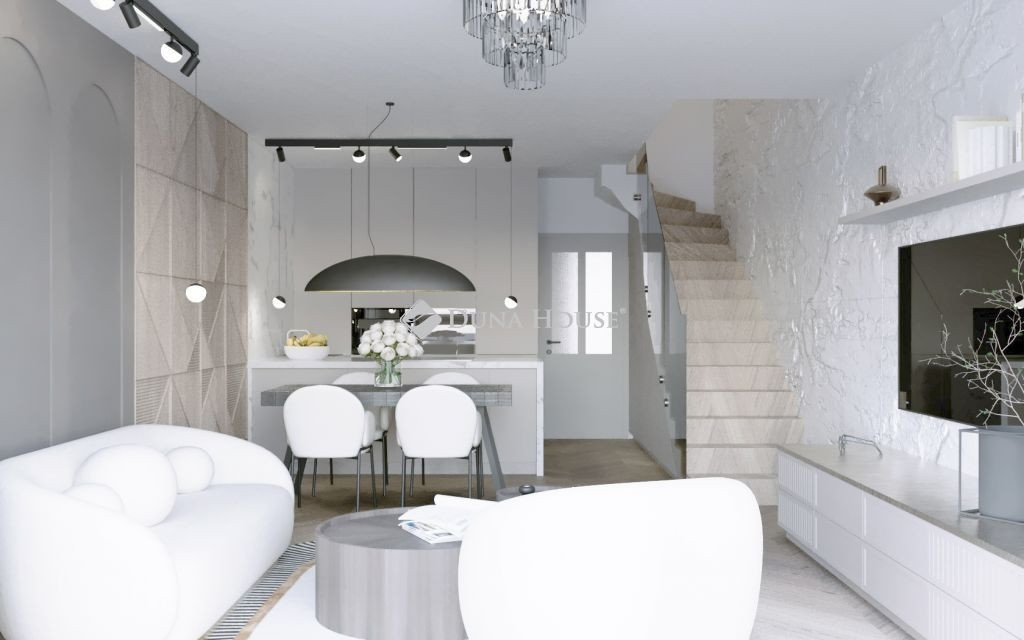 Fonyód Fő utcáján, a Balatontól 1200 méterre, 4 db, magas műszaki színvonalú, 92-96 m2-es sorházi lakás kerül kialakításra, saját kerttel.A lakások 2026 év III. negyedévtől lesznek költözhetőek. 2026 januárjában 50%-os készültségi fokon vannak. Földszinten előszoba, 1 szoba, fürdő+wc, és nagy, 31m2-es konyha-étkező-nappali helyiségek találhatók.A nappaliból induló lépcsőn keresztül jutunk a tetőtérbe, ott 2 szoba, fürdő és wc, továbbá háztartási helyiségek találhatók.A nappali nagy méretű nyílászáróval kapcsolódik a külső teraszhoz és kerthez. Fűtés-hűtés és melegvíz ellátásról a lakásonként beépített hőszivattyúk gondoskodnak, helyiségenként szabályozható a padlófűtés és a mennyezethűtés.Felső kategóriás, panorámás-motoros redőnnyel szerelt nyílászárókkal, és külső 15 cm-es grafitos szigeteléssel alakították ki a lakásokat.Riasztó és napelemes rendszerek építését a lakásokban előkészítették. Minden lakáshoz saját, déli fekvésű, kerítéssel ellátott kert is tartozik, valamint lakásonként 1 db felszíni kocsibeálló is. A kocsibeállók elektromos autótöltő előkészítéssel rendelkeznek.Plusz autóbeálló is vásárolható.Ha felkeltette az érdeklődését, kérem, hogy keressen!
