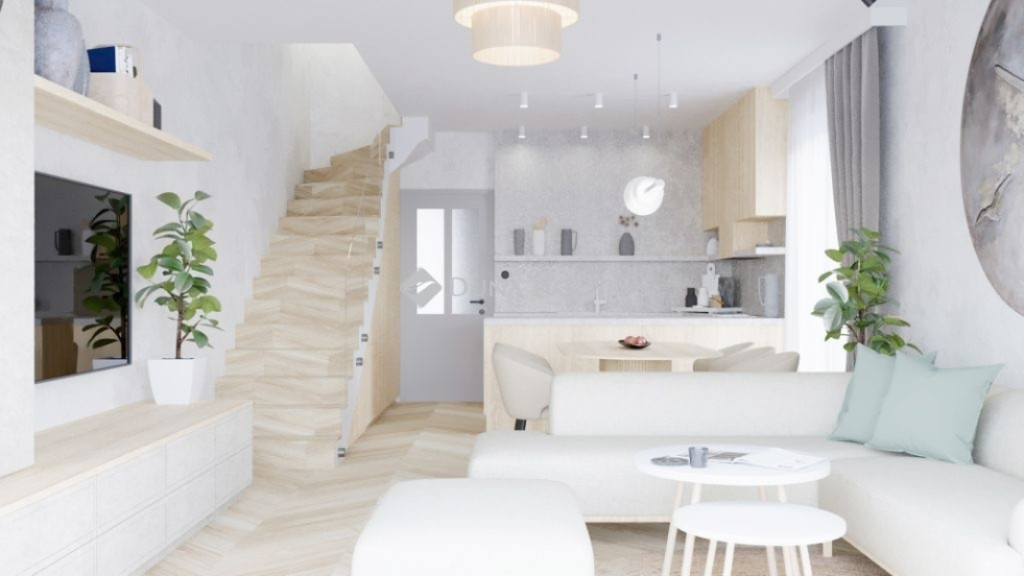 Fonyód Fő utcáján, a Balatontól 1200 méterre, Fonyód Fő utcájában 4 db, magas műszaki színvonalú, 92-96 m2-es sorházi lakás kerül kialakításra, saját kerttel.A lakások 2026 év III. negyedévtől lesznek költözhetőek. 2026 januárjában 50%-os készültségi fokon vannak. Földszinten előszoba, 1 szoba, fürdő+wc, és nagy, 31m2-es konyha-étkező-nappali helyiségek találhatók.A nappaliból induló lépcsőn keresztül jutunk a tetőtérbe, ott 2 szoba, fürdő és wc, továbbá háztartási helyiségek találhatók.A nappali nagy méretű nyílászáróval kapcsolódik a külső teraszhoz és kerthez. Fűtés-hűtés és melegvíz ellátásról a lakásonként beépített hőszivattyúk gondoskodnak, helyiségenként szabályozható a padlófűtés és a mennyezethűtés.Felső kategóriás, panorámás-motoros redőnnyel szerelt nyílászárókkal, és külső 15 cm-es grafitos szigeteléssel alakították ki a lakásokat.Riasztó és napelemes rendszerek építését a lakásokban előkészítették. Minden lakáshoz saját, déli fekvésű, kerítéssel ellátott kert is tartozik, valamint lakásonként 1 db felszíni kocsibeálló is. A kocsibeállók elektromos autótöltő előkészítéssel rendelkeznek.Plusz autóbeálló is vásárolható.Ha felkeltette az érdeklődését, kérem, hogy keressen!