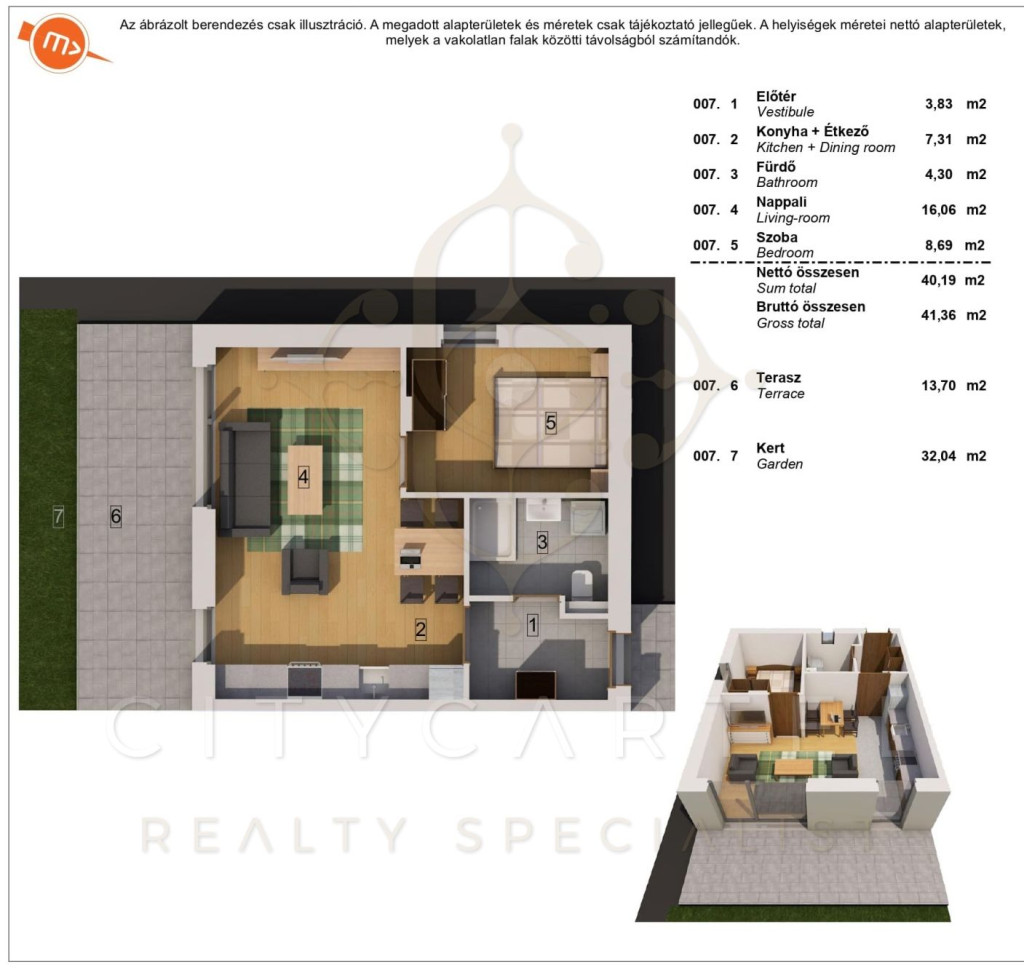 - földszinti lakások saját kertkapcsolattal, az emeletiek pedig erkélykapcsolattal rendelkeznek,