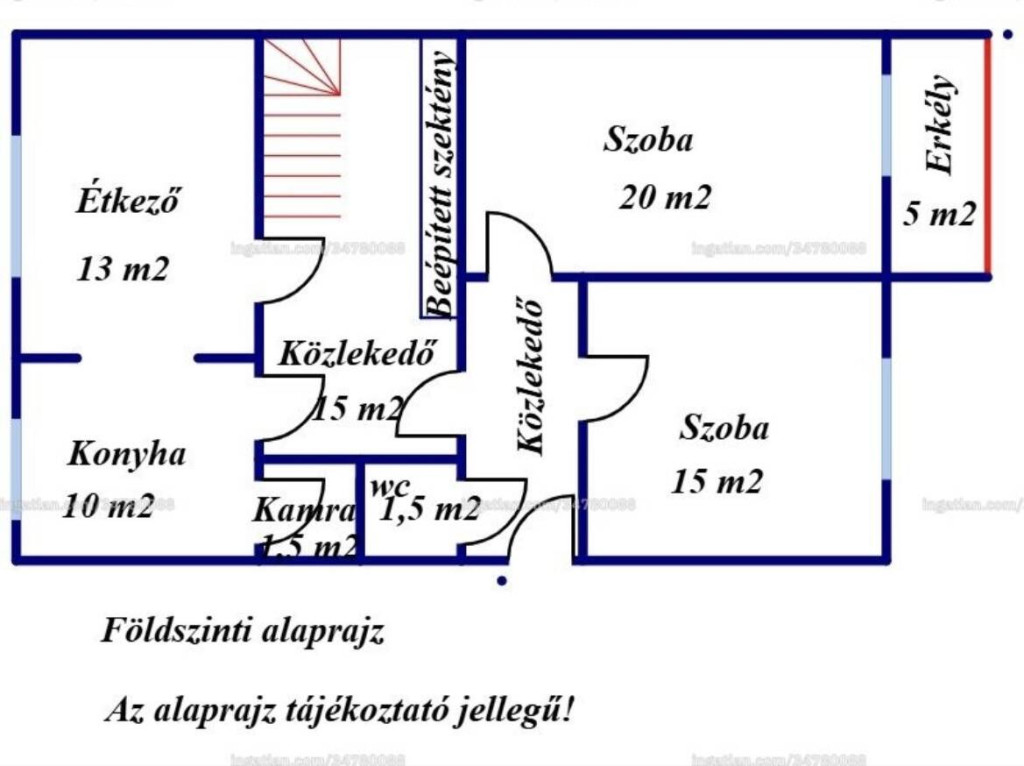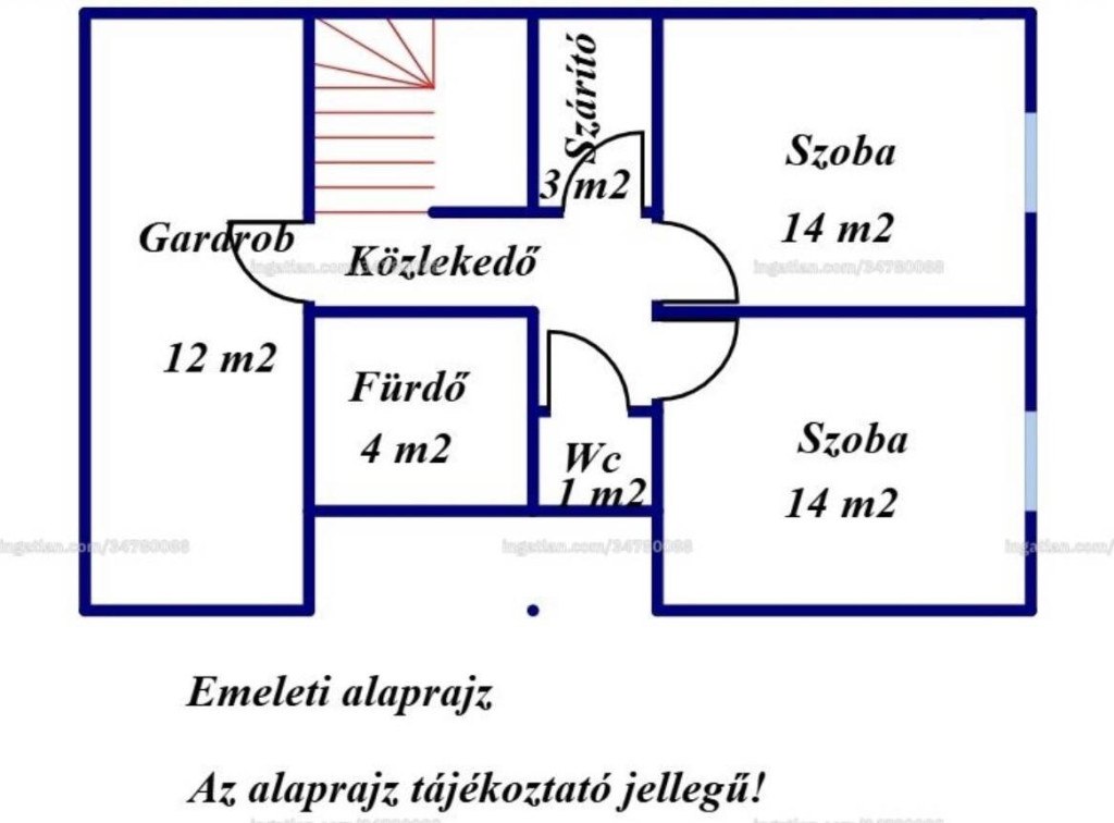 • Tetőtérben: 2 szoba, külön fürdőszoba (káddal és külön helyiségben WC)