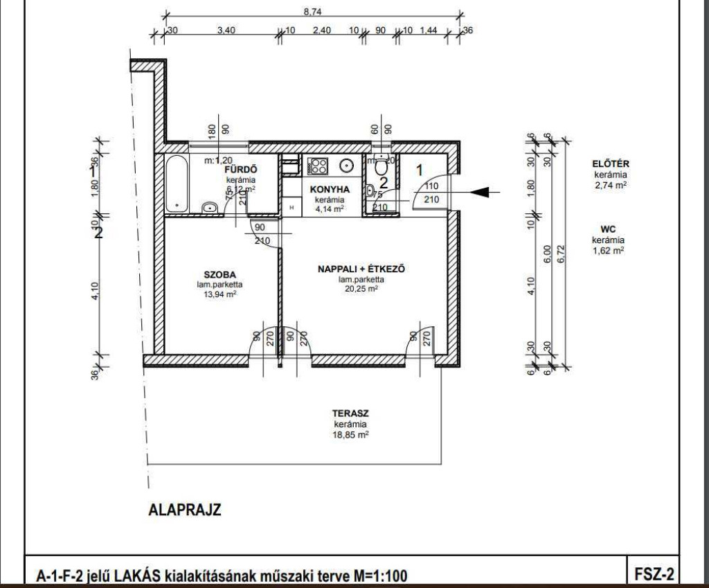 Elrendezése: a lakáshoz előszoba, wc kézmosóval, tágas amerikai konyhás nappali – 18.85 m2-es terasz kapcsolattal, hálószoba és egy kádas fürdőszoba tartozik. Az ingatlanhoz tartozik még egy kisebb privát zöld füvesített, körbekerített udvar is. Külön közmű mérő órákkal rendelkezik, fűtéséről és meleg víz ellátásáról egy kombi gázkazán gondoskodik. Burkolatai, szaniterei megkímélt állapotban vannak, a lakás tartozéka a fotókon látható konyhabútor is.
