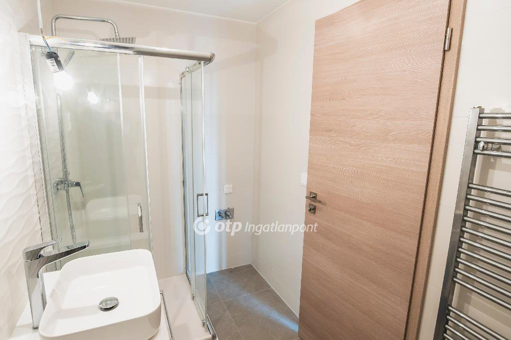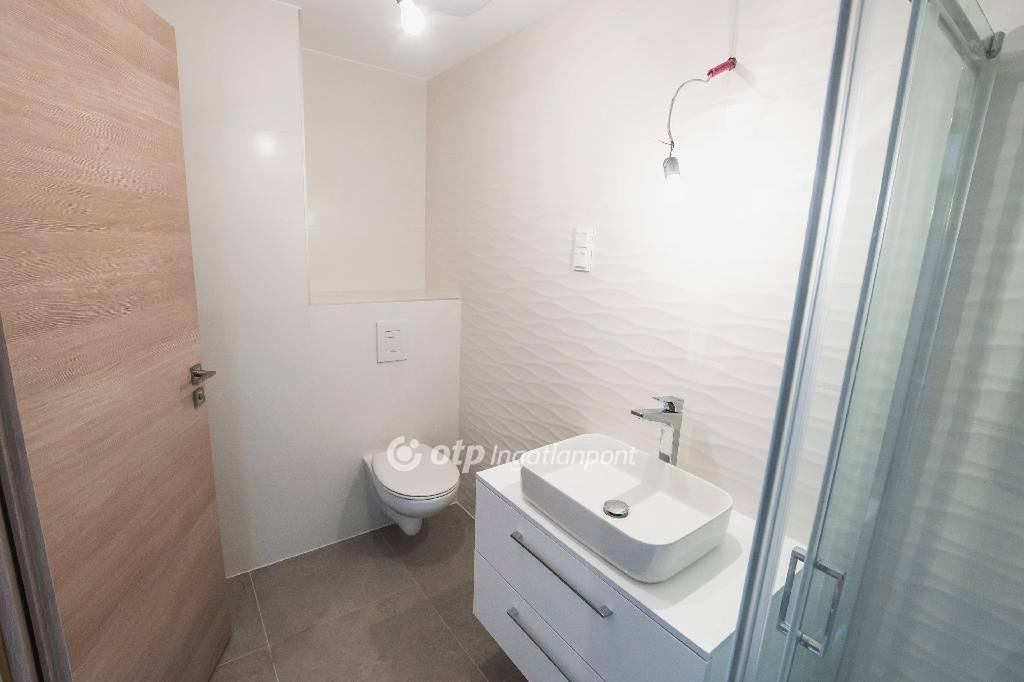 Műszaki tartalom és felszereltség: Padlófűtés, saját termosztáttal szabályozható, Egyedi digitális hőmennyiségmérő, Légkondicionáló berendezés a szobákban, Elektromos redőny kiállás rejtett tokban, Riasztó előkészítés. Minőségi kivitelezés modern, elegáns burkolatokkal. Zuhanyzós fürdőszoba beépített, fiókos mosdópulttal, elegáns króm törölközőszárítós radiátorral.