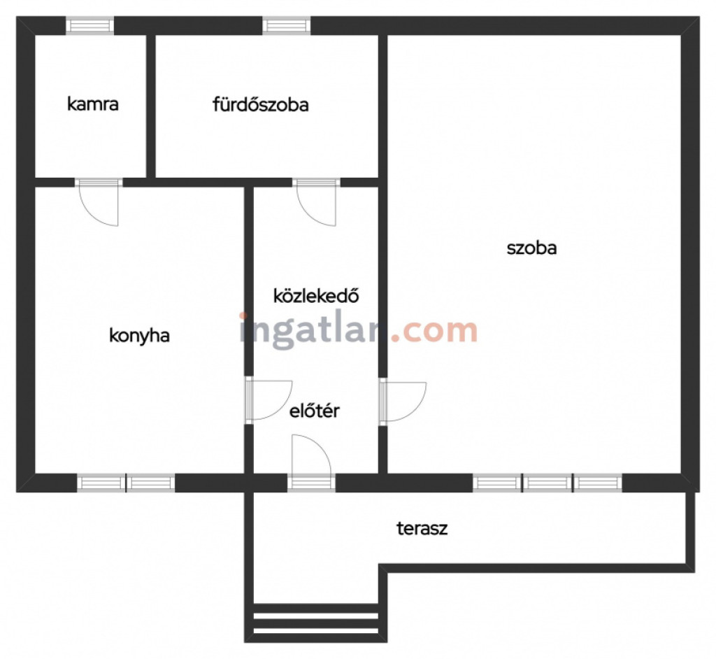 A lakásban egy 18 nm-es, világos szoba, ÉTKEZŐRÉSSZEL kialakított NAGY ABLAKOS konyha, előtér, egy zuhanyzót és wc-t magába foglaló fürdőszoba és kamra kapott helyet.