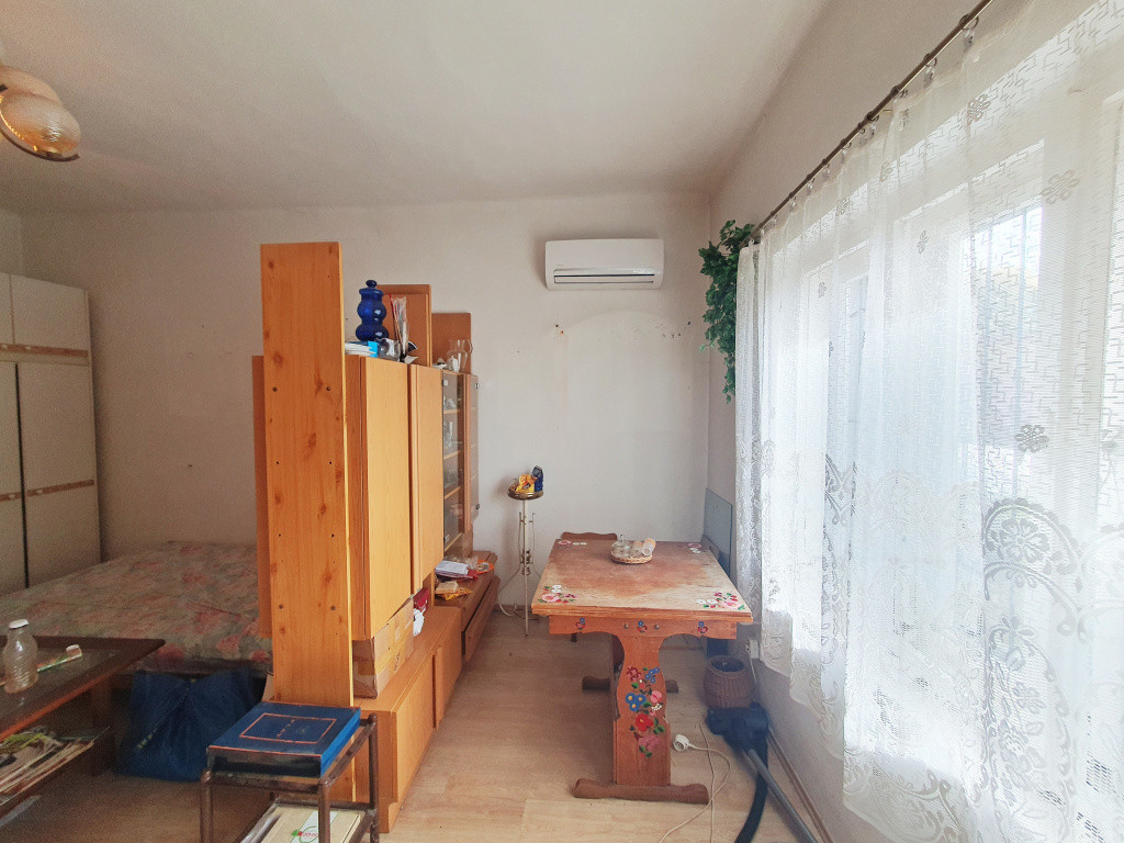 Az ingatlant 2015-ben felújították. Cserélt vízvezetékek, részben cserélt villanyvezeték. A szoba laminált parketta burkolatú, benne nagyméretű, szúnyoghálós ablak. További részeken járólap. Új bejárati ajtó. Nagy belmagasság. A melegvizet villanybojler adja. A fűtés CSERÉPKÁLYHÁVAL és a 2023-ban bekerült HŰTŐ FŰTŐ KLÍMÁVAL biztosított. Külön mérőórák fogyasztás szerint. Fafödém, cserépfedés.