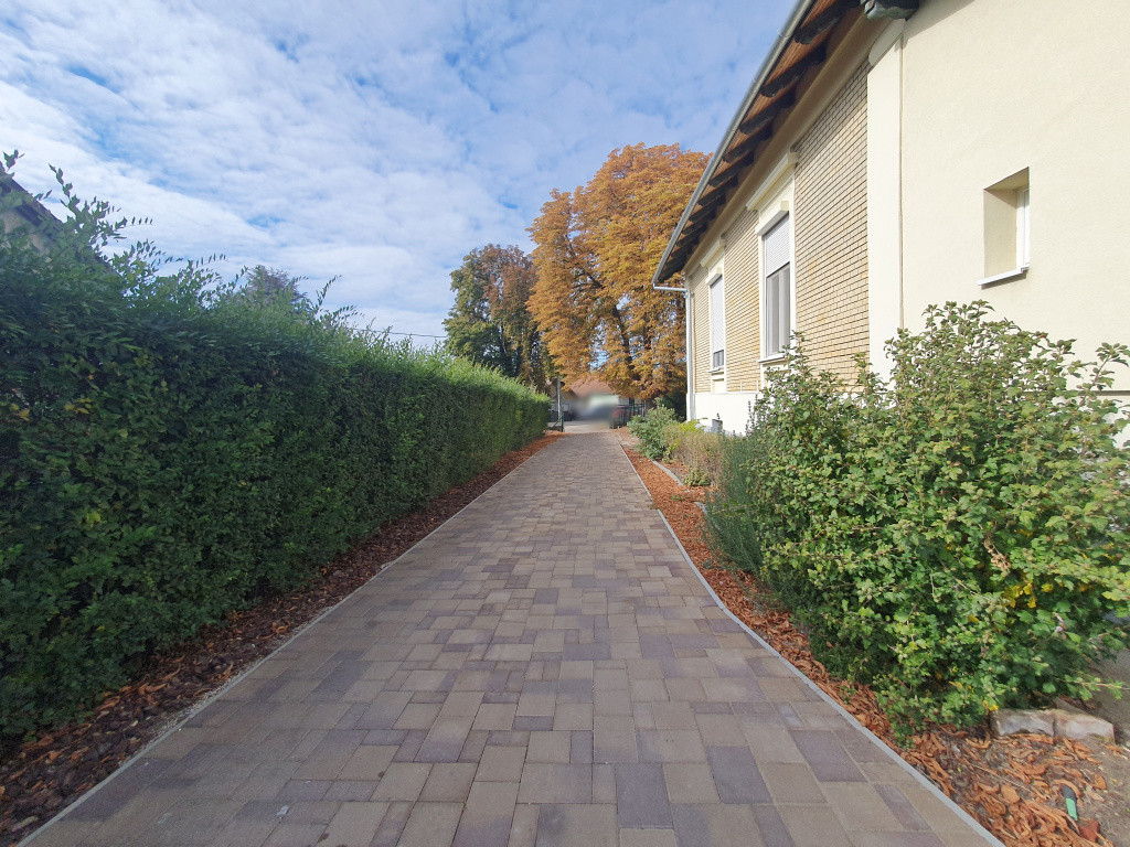 A társasházhoz rendezett közös udvar és közös bejárati kapu, járólappal burkolt gépkocsi behajtó, hatalmas rendezett közös kert, közösségi tér tartozik.