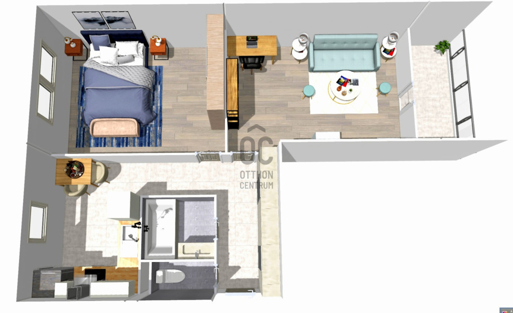 + A konyha és a fürdőszoba is újra lett építve, ezzel is tereket nyerve. A gépesített modern konyhabútor az ár részét képezi.