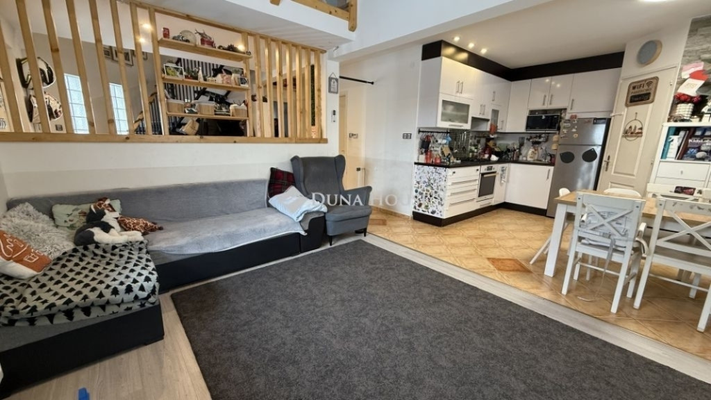 A lakás 74 m² hasznos alapterületű, melyet kiegészít egy kb. 6 m²-es galéria, valamint a nappaliból nyíló, fedett terasz. Rendkívüli hangulatát a fa burkolatok és gerendák, valamint az előtér egyedi, fa lamellás válaszfala adják, a lakás összességében meleg, természetközeli hatást kelt.