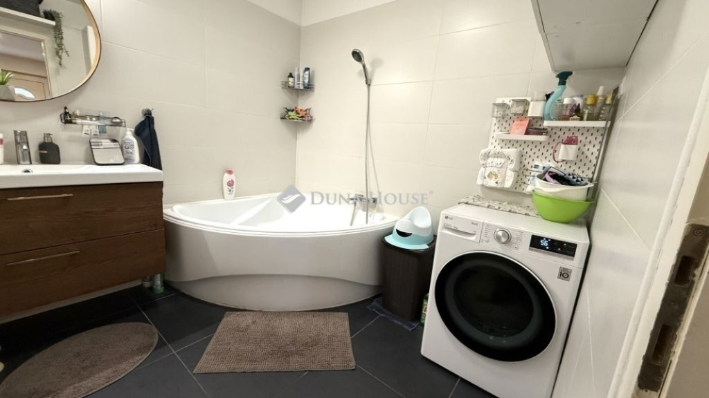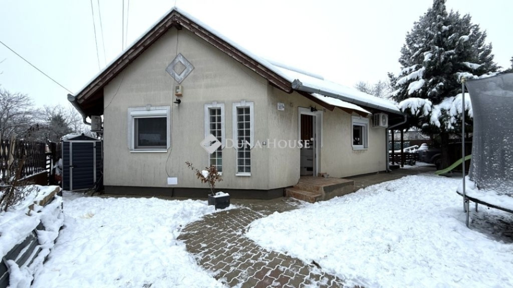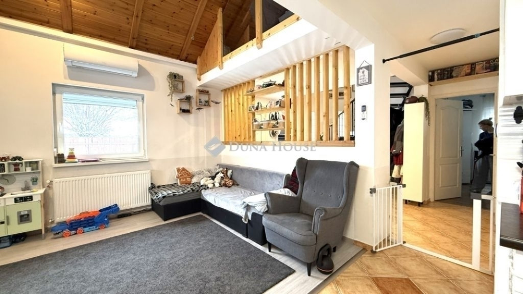Különleges hangulatú, korszerű és energiatakarékos otthon GyömrőnÚj tulajdonosát keresi kertvárosi sorház utcafronti, szélső lakása. A 160 m² saját kerttel rendelkező lakás három oldalról körbejárható, közös fala a szomszédos lakás lakóterével nincsen, így kiváló lehetőség azoknak, akik családi házat keresnek, de nem szeretnének a kert gondozására hetente hosszú órákat szánni.A telek részben térkövezett, rajta elektromos kapuval ellátott, fedett gépkocsibeálló, valamint udvari tárolók és egy egyedi tervezésű játszóvár található. A lakás 74 m² hasznos alapterületű, melyet kiegészít egy kb. 6 m²-es galéria, valamint a nappaliból nyíló, fedett terasz. Rendkívüli hangulatát a fa burkolatok és gerendák, valamint az előtér egyedi, fa lamellás válaszfala adják, a lakás összességében meleg, természetközeli hatást kelt. Műszaki paraméterek:Ytong falazat nagyszerű hőszigetelőKombi cirkó gázkazán radiátor hőleadókkal3 db hűtő-fűtő klímaRiasztórendszerElektromos kapu5 kW-os napelem rendszer, amelynek köszönhetően a villanyszámla szinte nulla, a lakás energetikai besorolása pedig A+++Alaprajzi elrendezés:Földszint:ElőtérAmerikai konyhás nappaliFürdőszoba sarokkáddalKülön illemhelyTágas hálószoba egyedi beépített szekrénnyel, mely méretéből adódóan egy gardróbszobával vetekszikTetőtér:2 db külön nyíló hálószoba tetősík ablakokkalNappalira néző, fa burkolatú galériaA környék kiváló: sétatávolságra található óvoda és általános iskola, valamint a helyi busz megállója. A vasútállomás autóval 4-5 perc alatt elérhető, ahonnan a főváros 35 perc vagy autóval 30-40 perc forgalomtól függően. Gyömrő az agglomerációnak azon a szerencsés részén fekszik, ahonnan Budapest a reggeli csúcsforgalomban is viszonylag gyorsan, stresszmentesen megközelíthető.