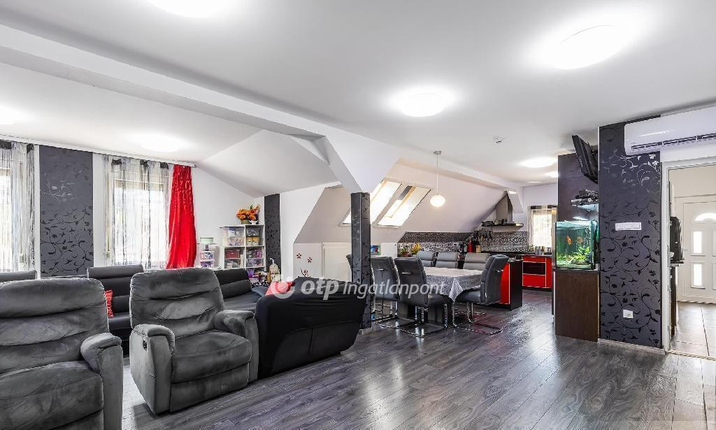 A tetőtér két lakásból áll: egy 25 m2-es egyszobás, kádas fürdőszobás garzonból, valamint egy nagyobb, három hálószobás, kádas fürdőszobás, hatalmas amerikai konyhás étkezős nappalival rendelkező lakásból. Jelenleg a két lakás egy háztartásban található. Minden hálószoba és nappali inverteres hűtő-fűtő klímával felszerelt. A tetőtérbe külön külső lépcső vezet, mely egy 12 m2-es teraszra érkezik.