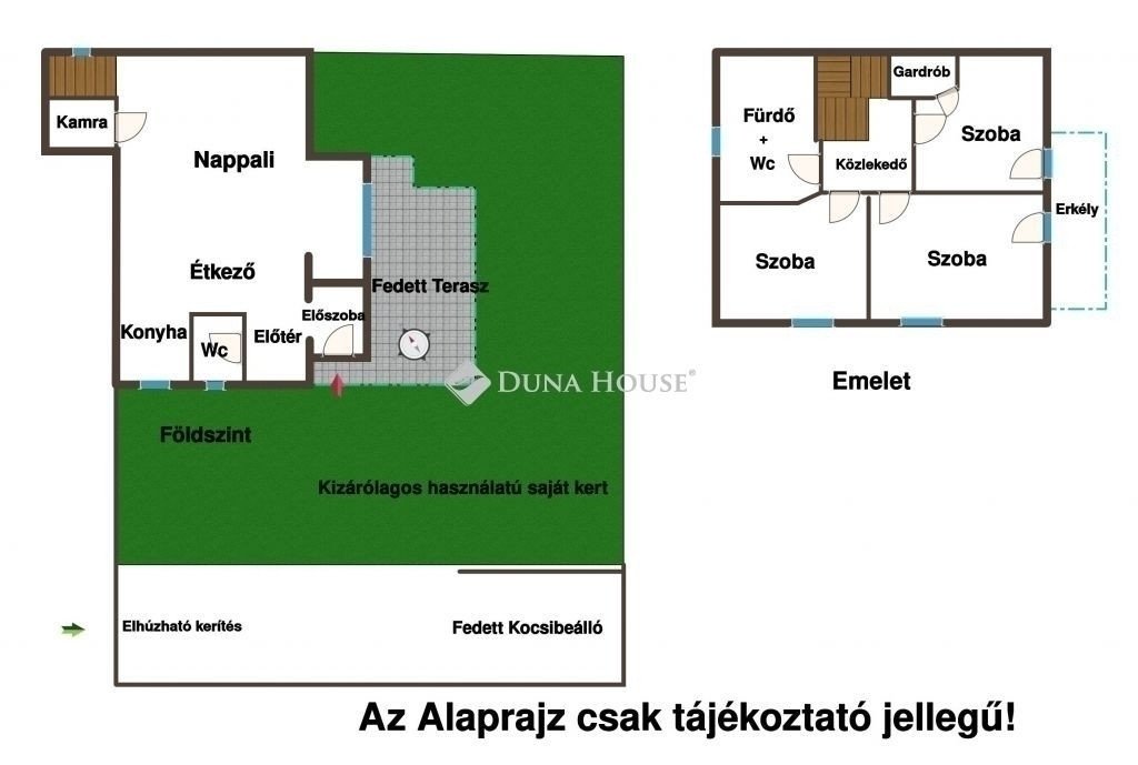 A telken 2 db 3 lakásos ház található, ez a legutolsó és egyetlen 2 szintes lakás, amelyhez önálló, lekerített, kizárólagos használatú kert tartozik.