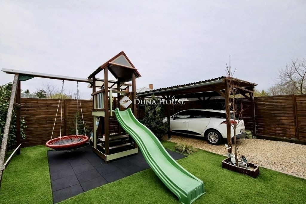 A képeken is látható, hogy a kert mérete ideális Gyermekes Családok számára is. Játszótér, homokozó, medence és tároló is kényelmesen elfér benne, amely biztosítja a gyerekek számára az önfeledt játszás örömét.