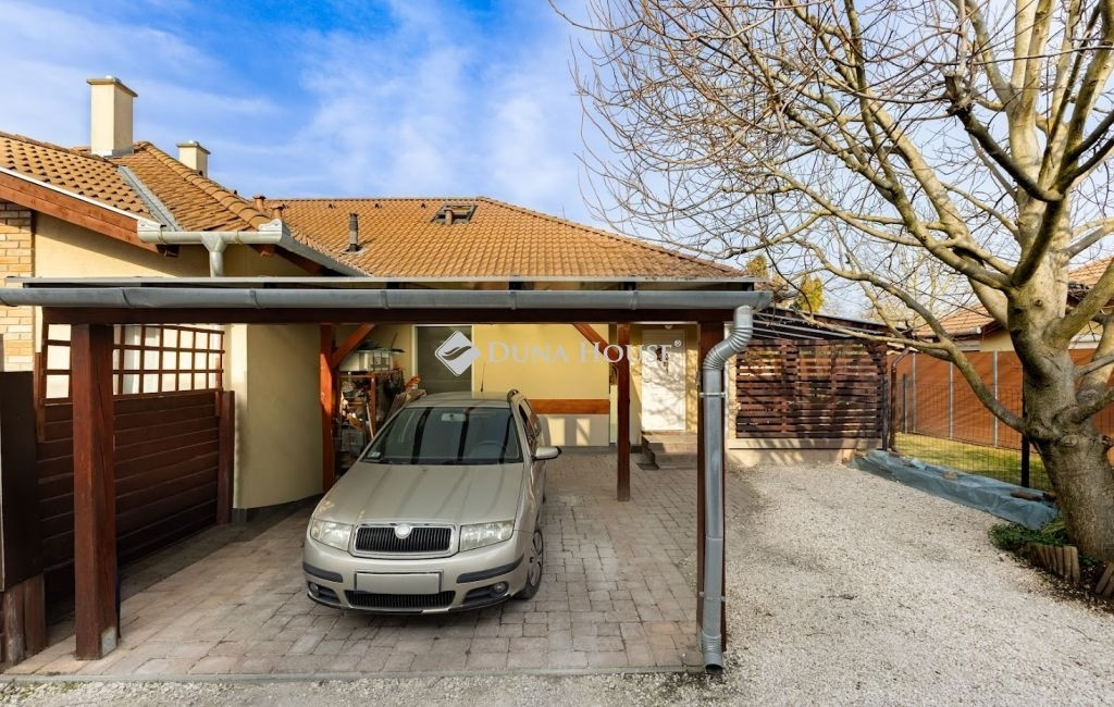 Eladó Gyömrő, Erzsébettelepi részén, csendes, kertvárosi utcában, egy 60 nm-es, 1+2 fél szobás, egyszintes ház, álló galériával, fedett autóbeállóval és kizárólagos használatú saját kerttel.