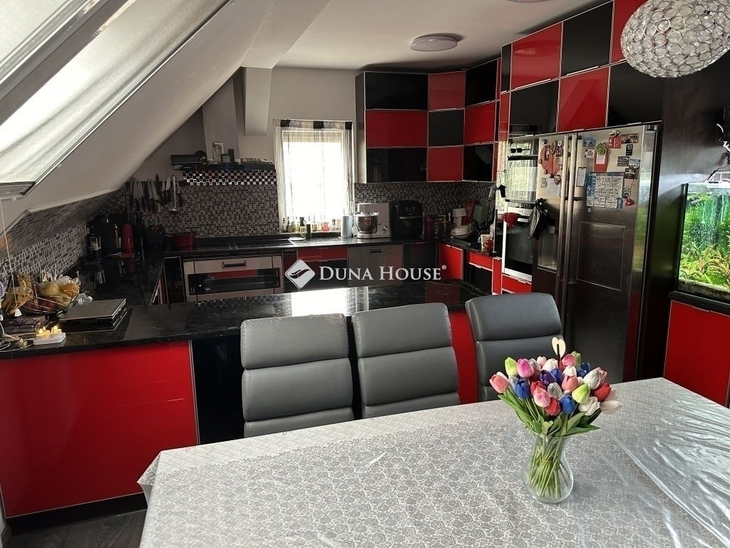 Különleges tetőtéri lakás eladó Gyömrő központjában tágas terekkel, modern kialakítással!Eladásra kínálok Gyömrő szívében egy 110 m² feletti, teljesen külön bejáratú tetőtéri lakást, amely kényelmes otthont biztosíthat akár nagyobb család számára is. Az ingatlan a 80-as években épült ház teljes körű átépítése és bővítése során, 2016-ban került kialakításra, így korszerű állapotban várja új tulajdonosát. Társasház-alapító okirat segíti hogy minden rendezett legyen természetesenA lakás praktikus elrendezésének köszönhetően minden megtalálható benne, ami a kényelmes mindennapokhoz szükséges:Tágas, világos nappali (30 m²) ÉtkezővelKülön konyha beépített bútorokkal4 külön nyíló szoba (913 m²)2 fürdőszoba + külön WCSaját teraszModern műanyag nyílászárók redőnnyel, szúnyoghálóvalKlímaberendezésMűszaki tartalom:10 cm-es külső hőszigetelés35 cm födémszigetelésBB energetikai besorolás27 kW-os Bosch kondenzációs kombi gázkazánNapelemrendszerA lakás világos, barátságos tereivel ideális választás családok számára, de befektetésként is megállja a helyét, hiszen a külön szobák jól kiadhatók.Főbb adatok:Lakótér: 110+ m² (valós hasznos alapterület 130 m², belmagasság miatt hivatalosan kevesebb számolható)Szobák száma: 4 + nappaliFürdőszobák: 2 + külön WCSaját teraszKülön bejáratElhelyezkedés:Gyömrő központi részén található, pár perc sétára iskola, óvoda, bevásárlási lehetőségek, orvosi rendelő és éttermek. A városban strandfürdő és horgásztó is elérhető, míg Budapest autóval 10-15 perc alatt megközelíthető. Ez a lakás kiváló választás lehet többgyermekes családnak, otthonról dolgozó pároknak, de befektetésnek is, hiszen a helyi ingatlanpiac stabil és keresett.
