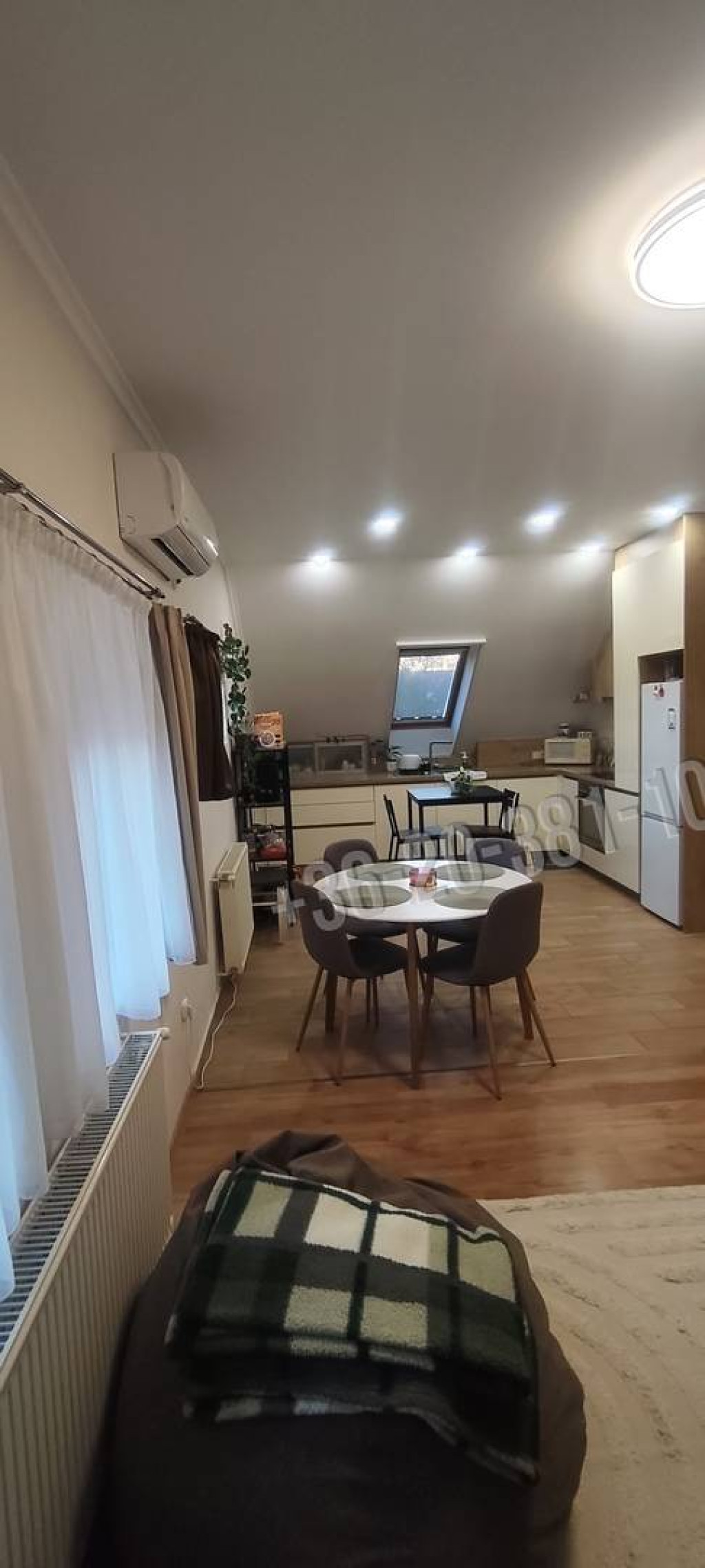 A tetőtér barátságos, otthonos hangulatot ad, miközben a modern fűtés és a szigetelés gondoskodik a kényelmes, fenntartható mindennapokról.