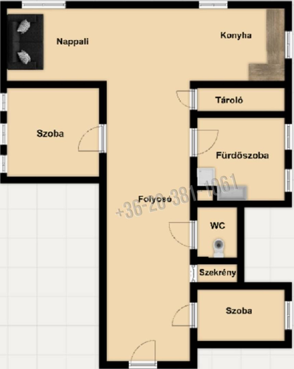 Udvari gépkocsibeálló tartozik hozzá, melynek megvásárlása kötelező (ára 2 millió Ft)