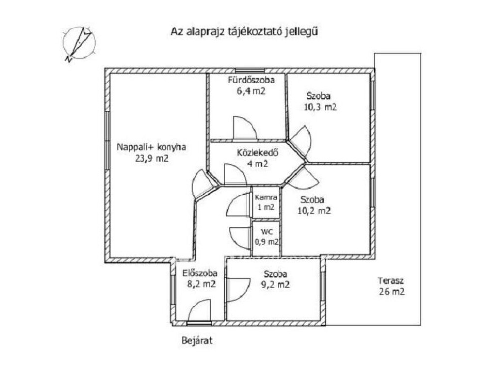 - tágas, élhető terasz, amely minden szobából megközelíthető,