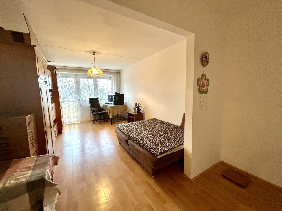 -Az erkélyes, hallos szoba a Barátság parkra néz.