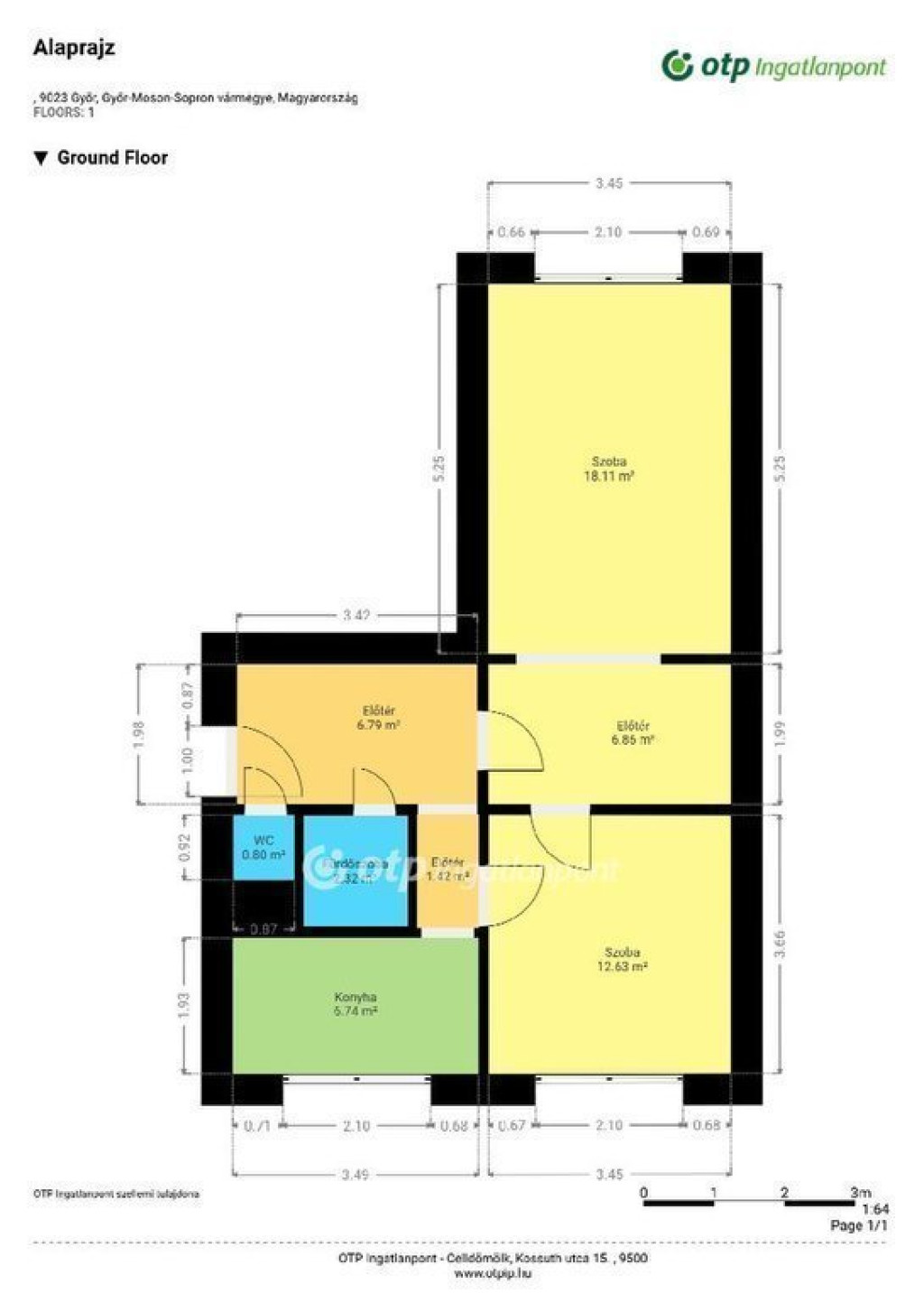 KIVÁLÓ BEFEKTETÉSI LEHETŐSÉG! Győr-Moson Sopron vármegyében, Győrben, Adyvárosban kínálok megvételre egy 53 m2-es, felújított, 1+1 szobás, kiváló elosztású, 2. emeleti társasházi tégla lakást. Az ingatlan nappaliból,étkezőből, egy külön bejáratú, tágas és napfényes lakószobából, konyhából, kádas fürdőszobából, WC-ből, beépített szekrénnyel ellátott, tágas előszoba-közlekedőből, valamint pincében lévő tárolóból áll. A lakás jó elosztású, világos, folyamatosan felújításon esett át. A társasház rendezett, ápolt, csendes, a szomszédok jók. A nappali parketta, a hálószoba laminált parketta burkolatú, a többi helyiség járólap borítású. Az otthon melegéről egyedi mérőkkel ellátott házközponti fűtés gondoskodik. Az új nyílászárók modern, műanyag kivitelűek, redőnnyel ellátottak. Az igényes burkolataiban összhangot mutató lakás szép beépített konyhabútorzattal rendelkezik. Az egyedi mérőórákkal rendelkező ingatlan közös költsége, mindösszesen 16 596 Ft. Ajánlom mindenkinek, aki egy alacsony rezsi költségű, energia igényű lakásban, nyugodt, tiszta környezetben szeretné mindennapjait tölteni. A tömb elhelyezkedése nagyon kedvező. Parkolás a lakótelep területén ingyenes. A vételár része 1 tároló helység. Amennyiben az ingatlan felkeltette érdeklődését, keressen bizalommal. Az OTP Ingatlanpont teljes körű ügyintézéssel áll az eladók és a vevők rendelkezésére. A kínálatunkból választott ingatlan finanszírozásához kedvezményes hitelkonstrukciót kínálunk. Az adásvételi szerződés megkötéséhez igény szerint megbízható ügyvédi közreműködést biztosítunk, és segítséget nyújtunk az adásvételhez kapcsolódó ügyek intézéséhez is. Az ingatlanról készült alaprajz, illetve fényképfelvételek az OTP ingatlanpont szellemi tulajdonát képezik. Az ingatlan megfelel a fix 3%-os Otthon Start Hitelprogram feltételeinek! Ez az ingatlan kiváló befektetés akár magán célra, akár bérbeadás, akár vállalkozás nyitása szempontjából! Amennyiben felkeltette érdeklődését az általam kínált ingatlan, NE SZALASSZA EL EZT A FIGYELEMRE MÉLTÓ LEHETŐSÉGET, HÍVJON MA!