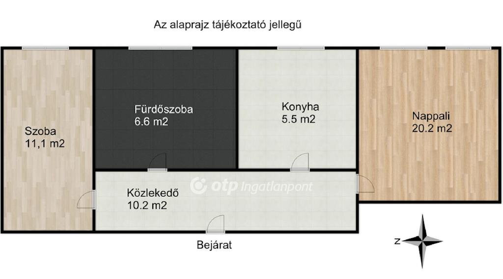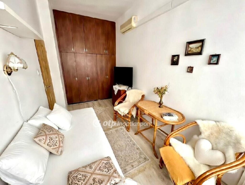 Az ingatlan elrendezése nagyszerű, az előtérből nyílik a tágas nappali, a különálló konyha, a fürdőszoba és a hálószoba. A két szoba klimatizált és parkettás, a többi helyiség járólappal burkolt. Az ablakok hőszigetelt műanyagok, a fűtés gáz központi radiátorokkal, a melegvíz pedig villanybojlerrel biztosított.