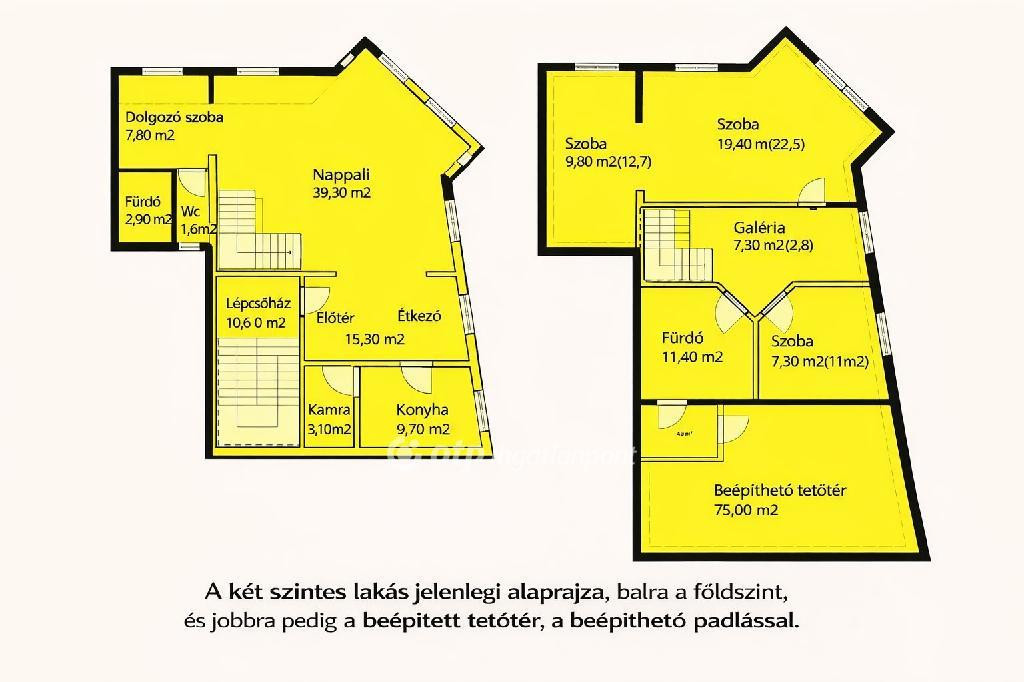 A másik ingatlan 75m2 padlás besoroloású, külön helyrajzi