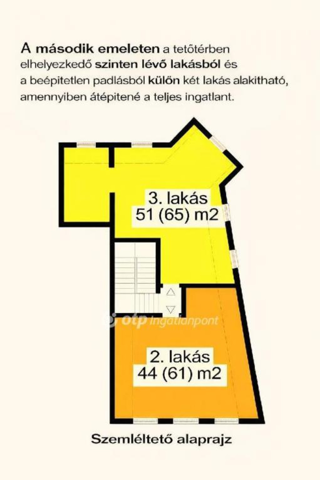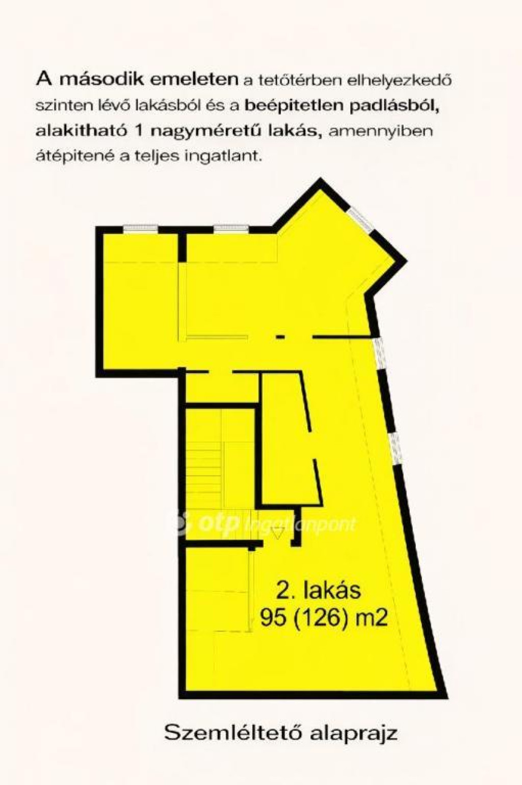 A másik ingatlan 75m2 padlás besoroloású, külön helyrajzi