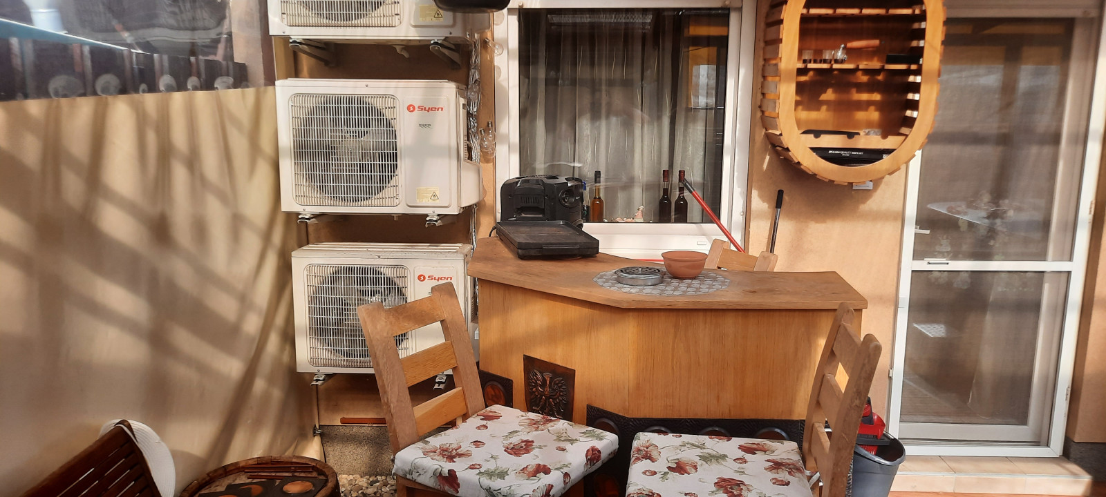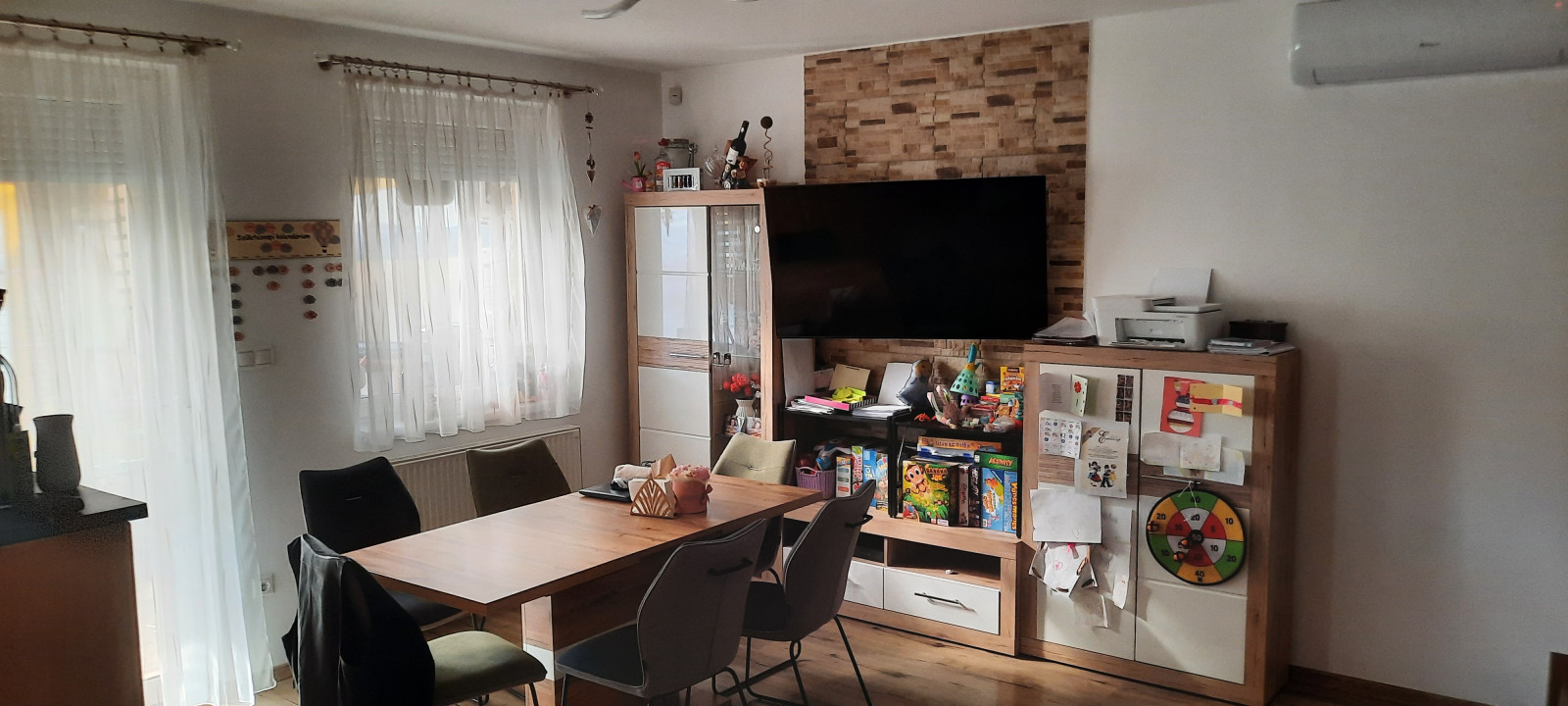 A nappali és mindkét szoba hűtő-fűtő klímával felszerelt.