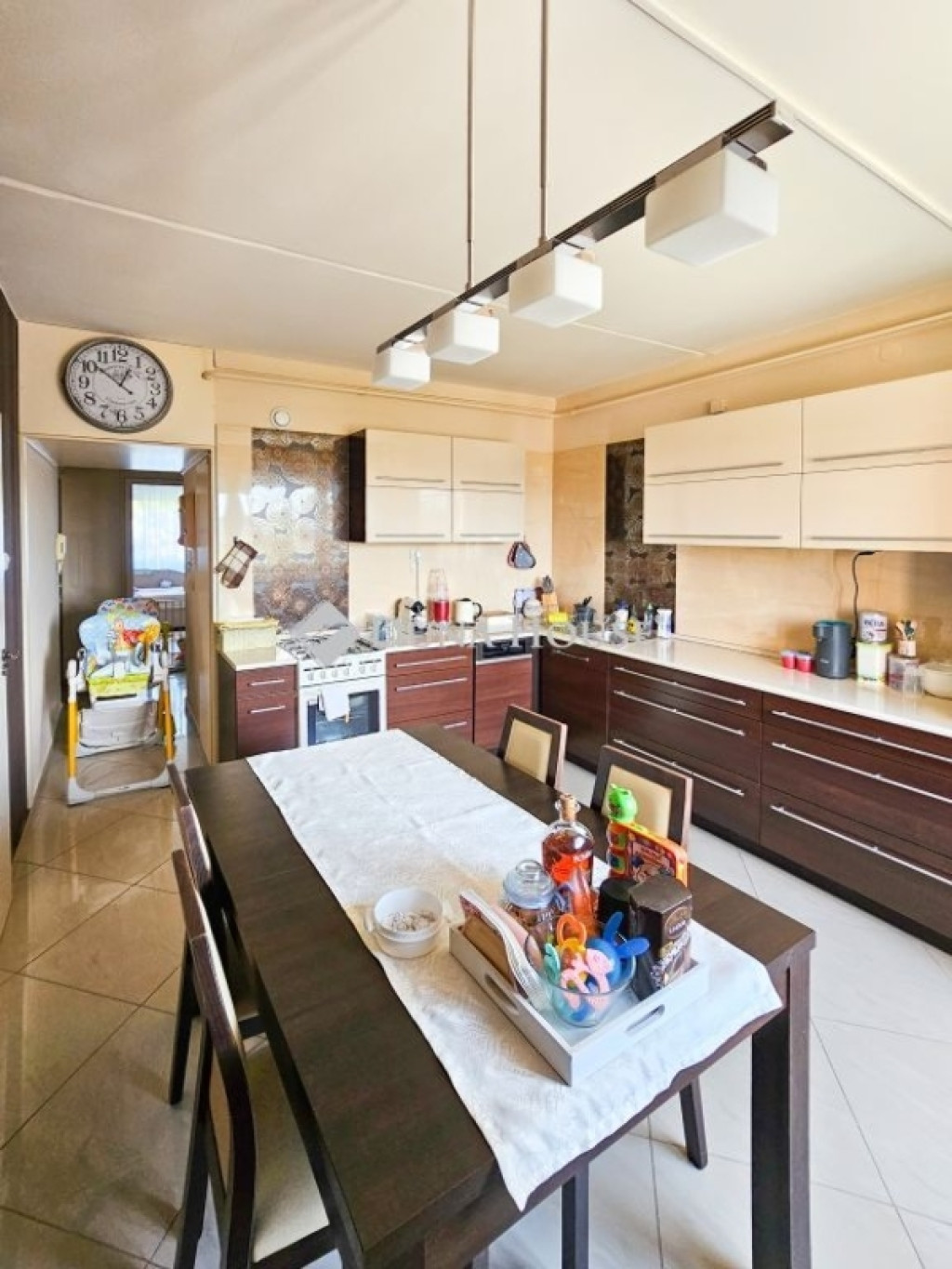 A tágas konyha beépített Whirlpool mosogatógéppel rendelkezik, és a lakáshoz egy külön spájz is tartozik, szúnyoghálós ablakkal.