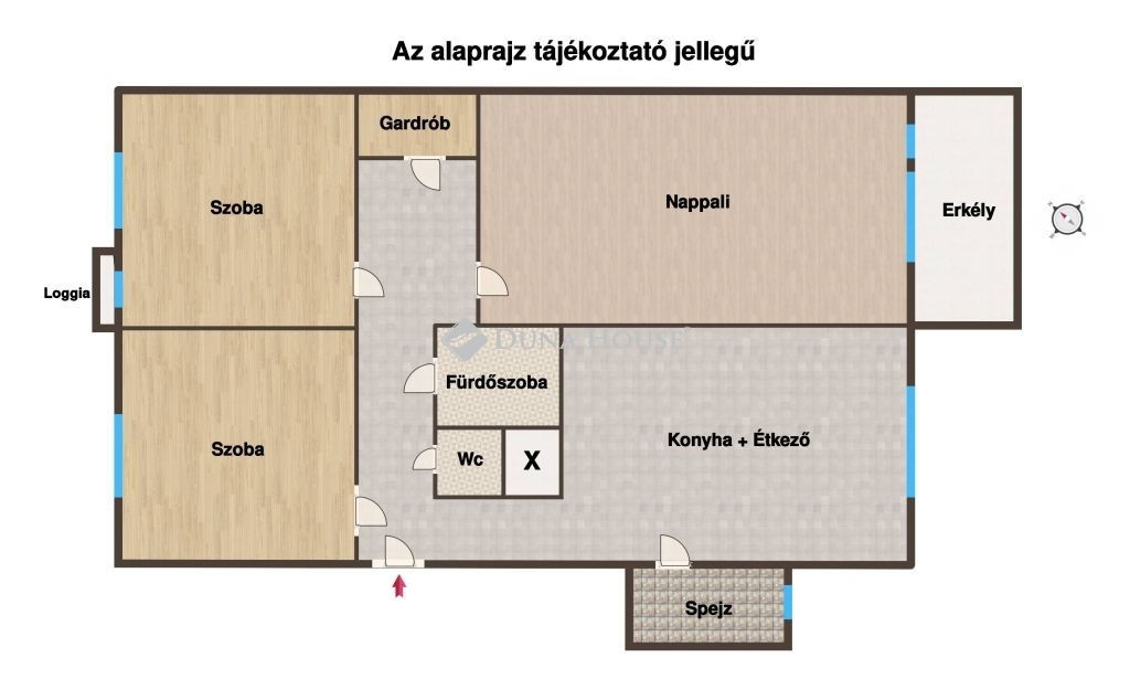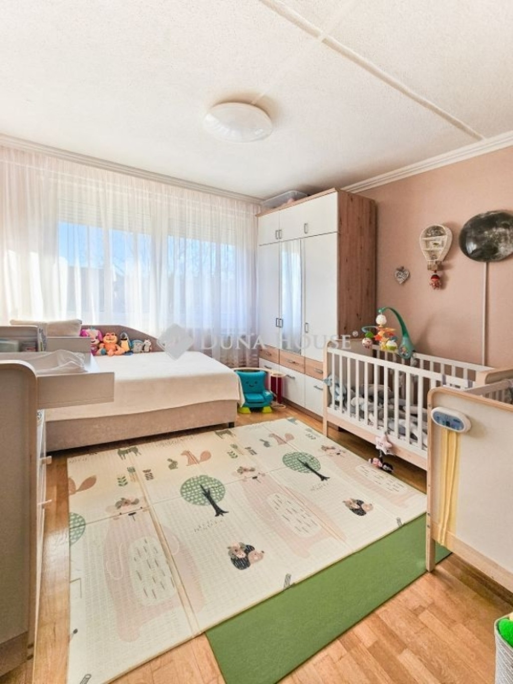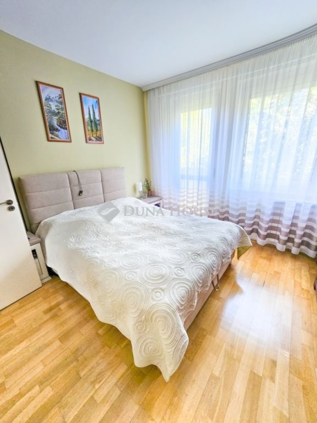 A hálószobához egy külön loggia is tartozik, amely kiválóan alkalmas egy csendes reggeli pihenőhelynek. Minden helyiség redőnnyel ellátott.