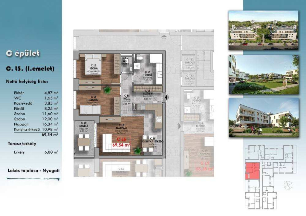 Árak: emeltszintű fűtéskész állapottól – kulcsrakész befejezéssel is kérhető, rugalmas feltételekkel!Kiemelt lakás – C épület, 1. emelet L5