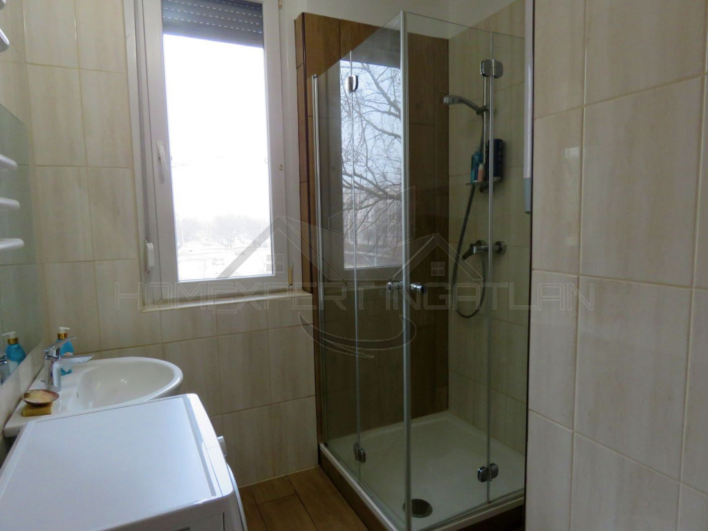 • a fürdőszoba 2025-ben teljesen megújult: modern burkolatok, új szaniterek, elegáns épített zuhanykabin két irányba nyíló harmonikaajtóval és biztonsági üveggel — egy apró, mégis luxus érzetű hely.
