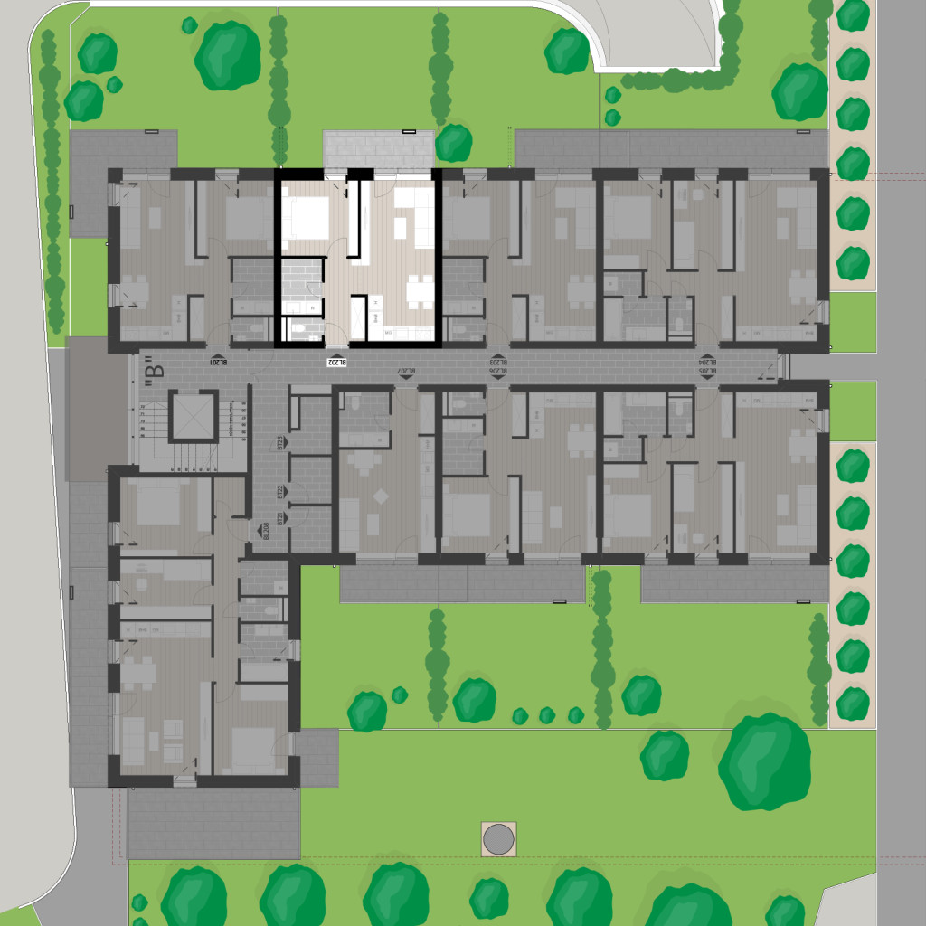 Győr frekventált városrészében, Szabadhegyen 56 lakásos, 4 szintes társasházban 25 és 80 m2 közötti lakások kerülnek megépítésre.