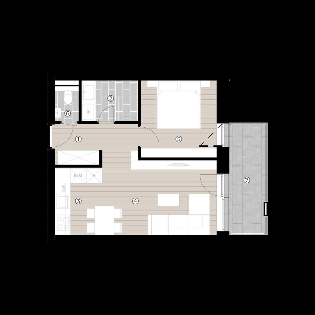 Az BL202 lakás a 2. emeleten található, 41,86 m2 területű és 7,4 m2 erkéllyel rendelkezik. Az ára 554.698.000 Ft.