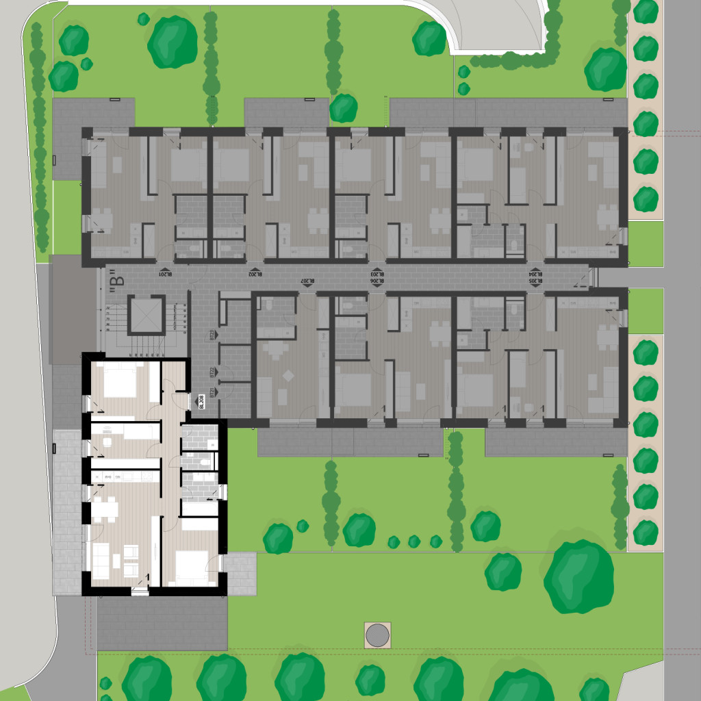 Az BL208 lakás a 2. emeleten található, 78,84 m2 területű és 14,47 m2 és 3,63 m2 erkéllyel rendelkezik. Az ára 99.254.040 Ft.