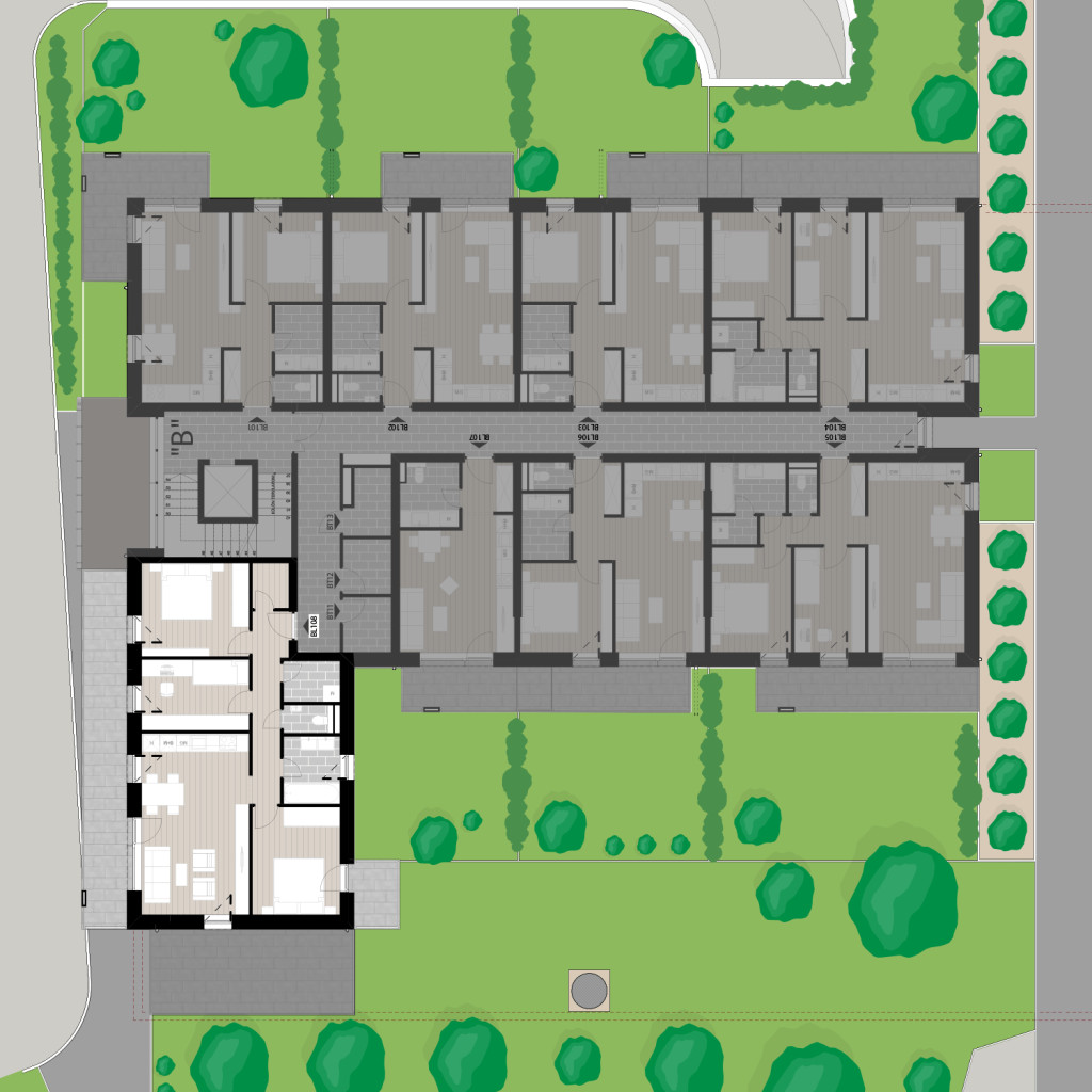 Az BL108 lakás a 1. emeleten található, 78,84 m2 területű és 19,99 m2 és 3,63 m2 különálló erkéllyel rendelkezik. Az ára 99.424.140 Ft.
