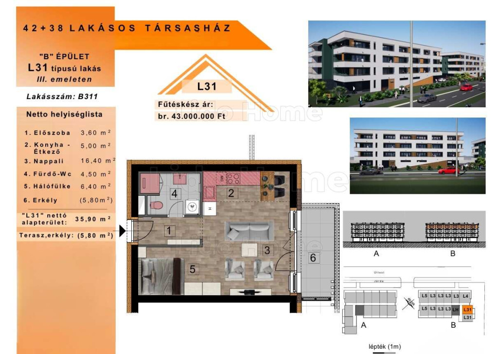 Lakásadatok: B épület 3. emelet L31 311 lakás
