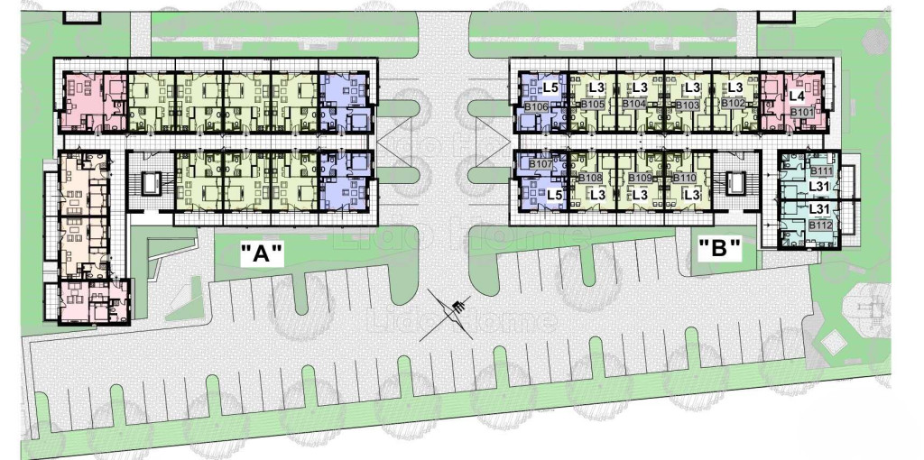 A két ütemben felépülő, 42 és 38 lakásos liftes társasház, 5580 m2-es területen helyezkedik el, ahol gyönyörűen parkosított, fás környezetben garantált a nyugalom és a kényelem minden lakó számára.