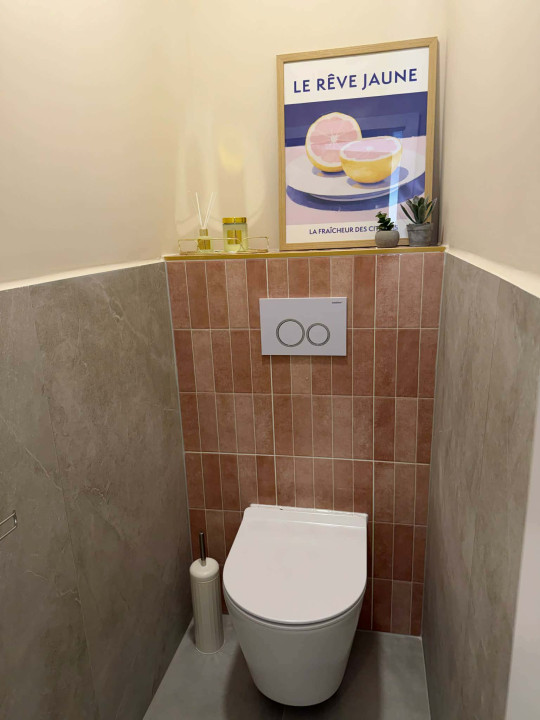 Praktikum: A zuhanyzóval kialakított fürdőszoba és a WC külön helyiségben található.