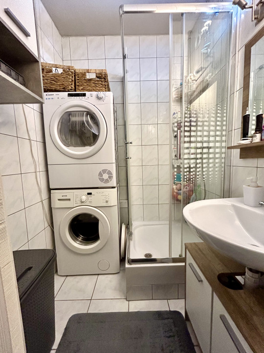 Modern fürdőszoba: Megújult, stílusos, zuhanykabinos fürdőszoba várja az új lakókat.