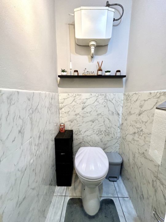 Minőségi burkolatok: A jelenlegi tulajdonos 2-3 éve minden helyiségben kicserélte a burkolatokat és friss szanitereket épített be a vizes helyiségekbe. A konyha arculata is megújult. A konyhabútor gépesített: indukciós villany főzőlap, villany sütő, mosogatógép.