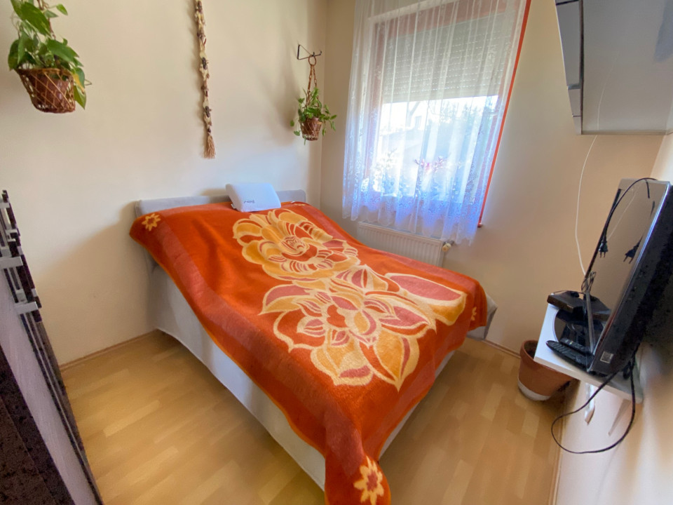 Gyula, Újvárosi részén nappai + félszobás új szerű állapotú földszinti 44,00 m2-es társasházi lakás hátső kis kerttel, elől fedett gk. beállóval eladó. Csere is: Gyulán I-emeletig, belvárosi 2 szobás lakásra értékegyeztetéssel.