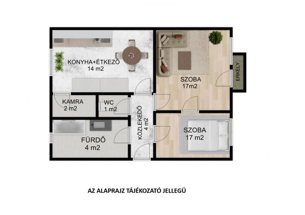 - Szobák parkettásak, konyha és közlekedő járólapos