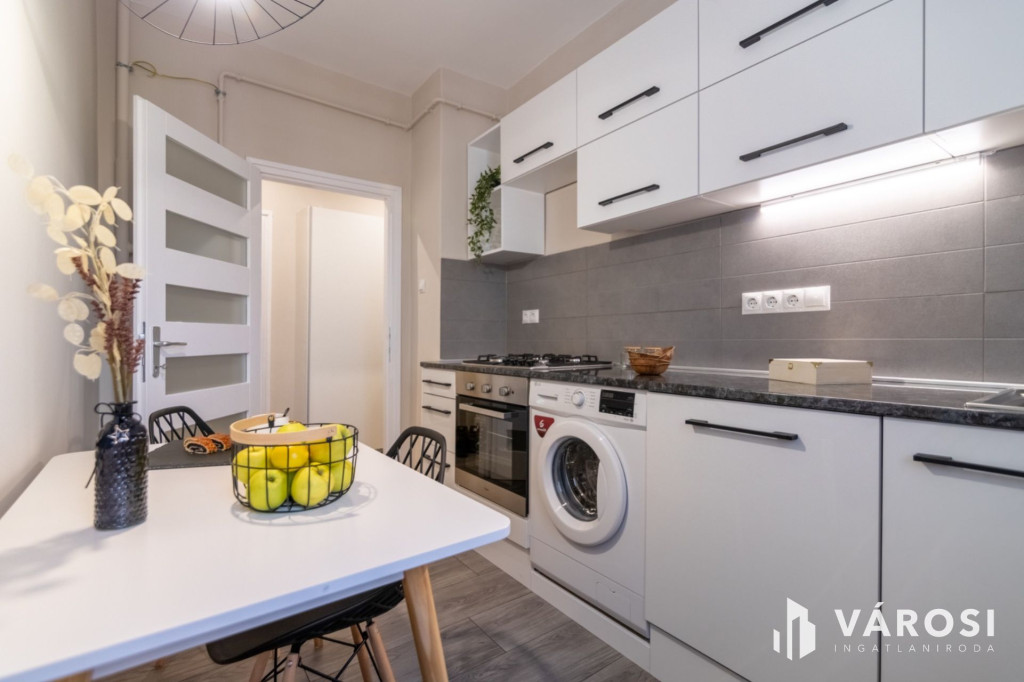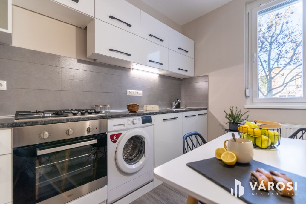 A lakás hirdetési ára tartalmazza a képeken látható újszerű bútorokat és műszaki cikkeket (mosógép, mosogatógép, beépített bútorok stb).