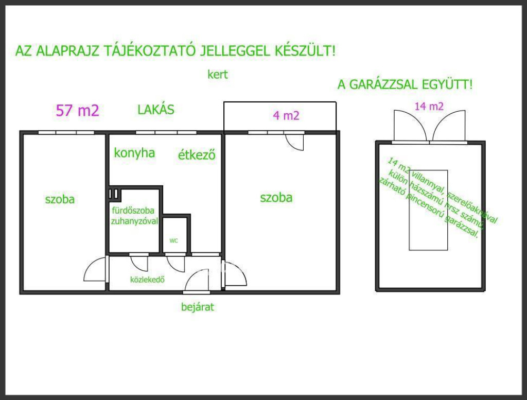 HAJDÚBÖSZÖRMÉNYBEN RENDKÍVŰL JÓ HELYEN ELADÓ, LAKÁS GARÁZZSAL EGYÜTT! Egy 57 m2-es magas földszinti kert kapcsolatos,